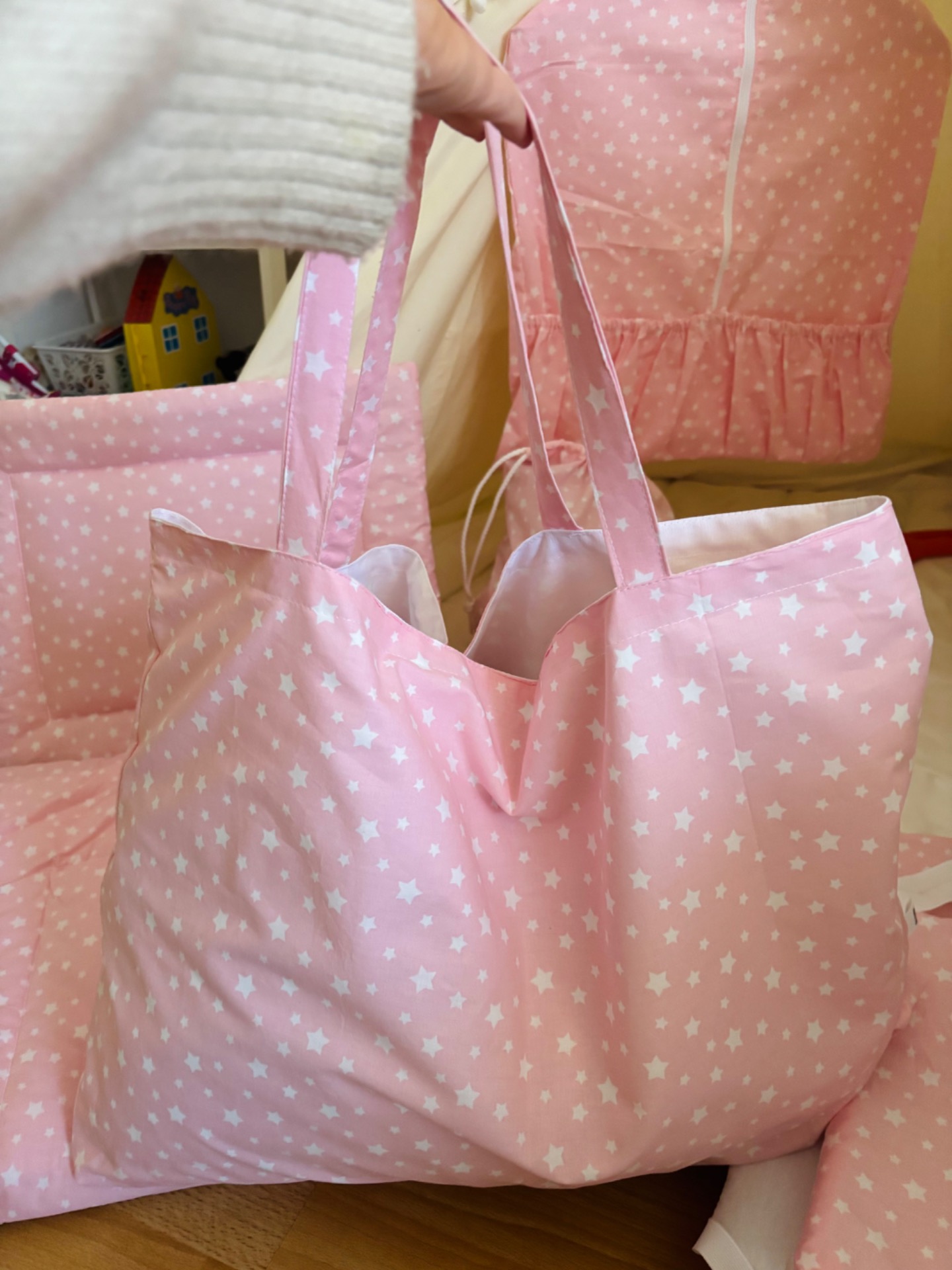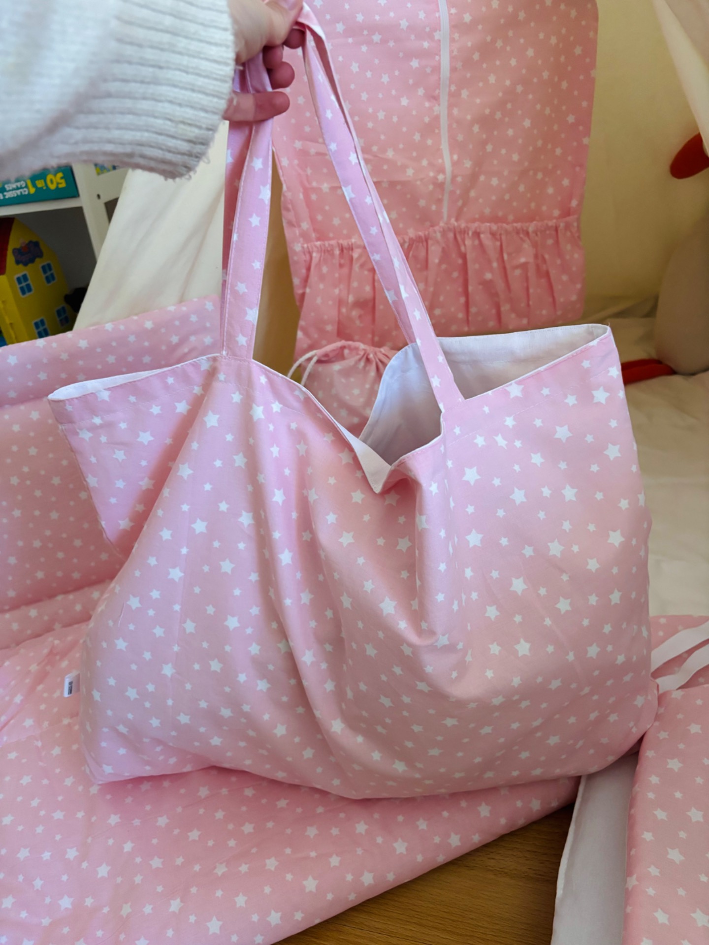 Ágyneműtartó szatyor (rózsaszín csillagos)