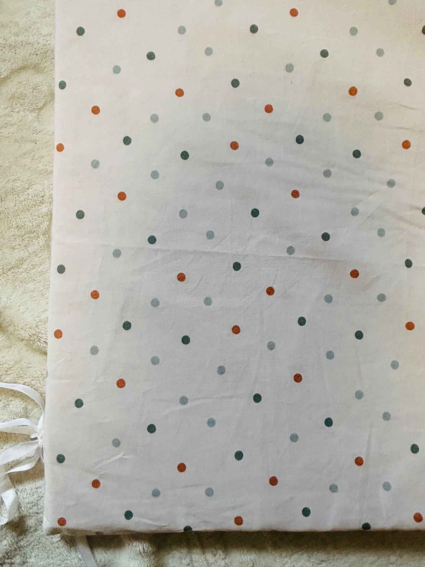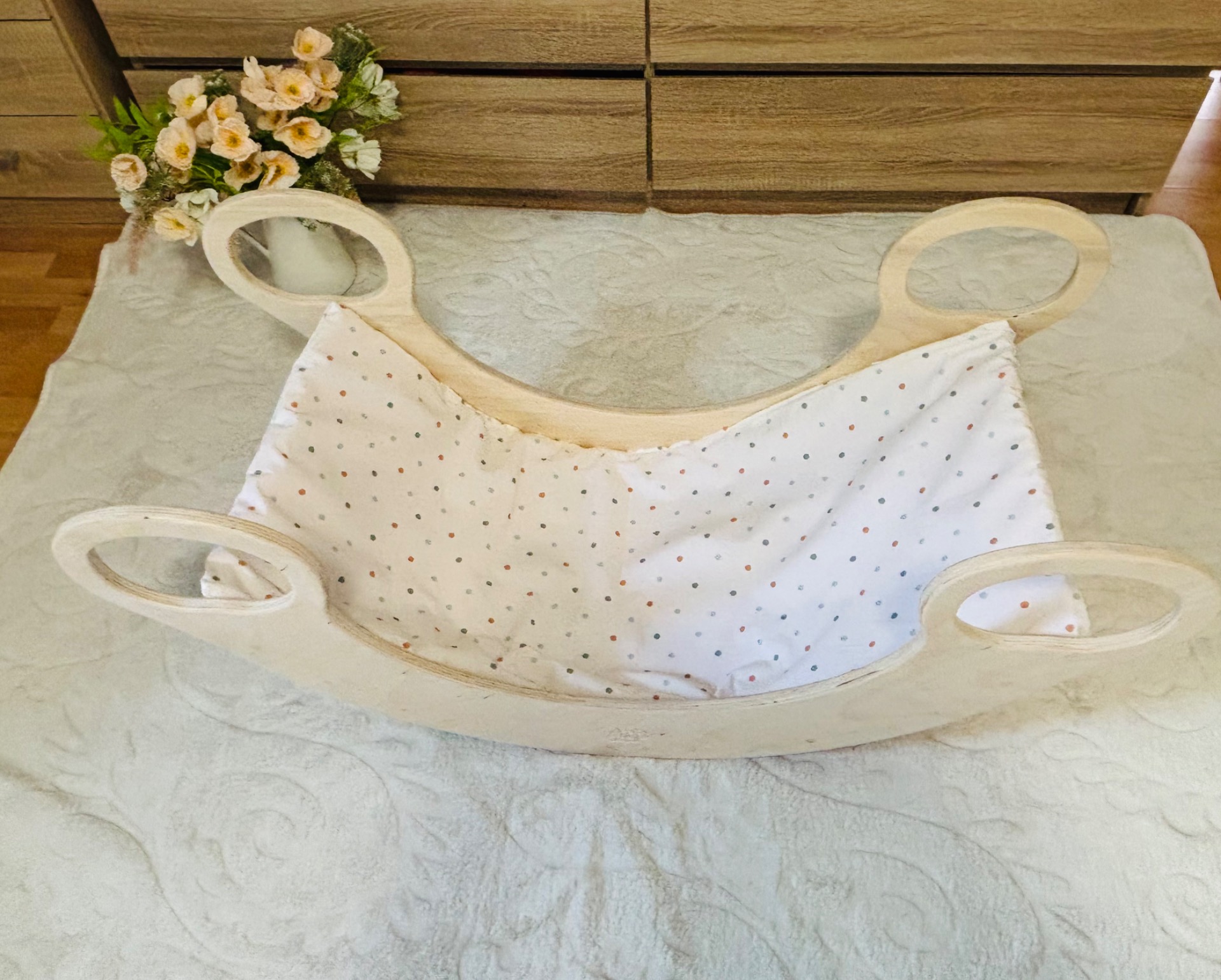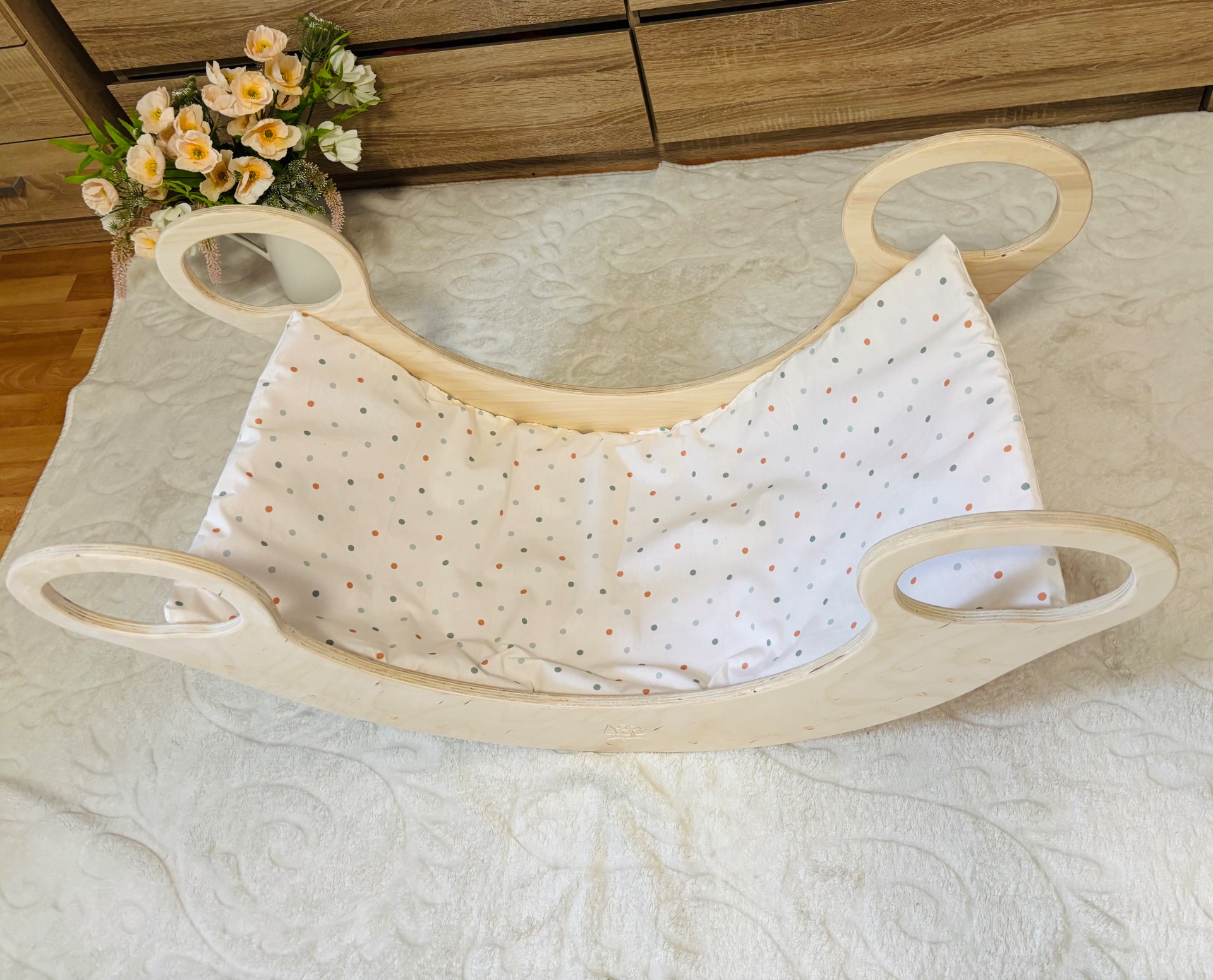 Pamutvászon anyagból készült,40 fokon mosógépben mosható, szárítógépben szárítható,vasalható,lecipzározható huzattal. 4 helyen odaköthető a hintához.