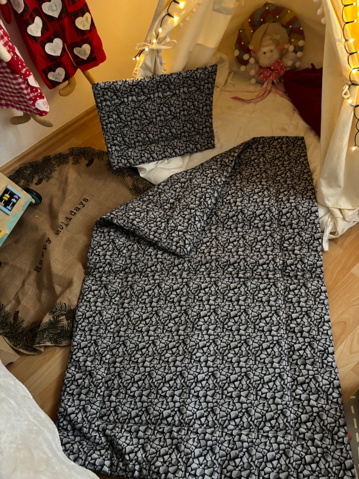 A párna és a takaró mindkét oldala pamutvászon anyagból készült közte 300 gramm vatelin töltettel.