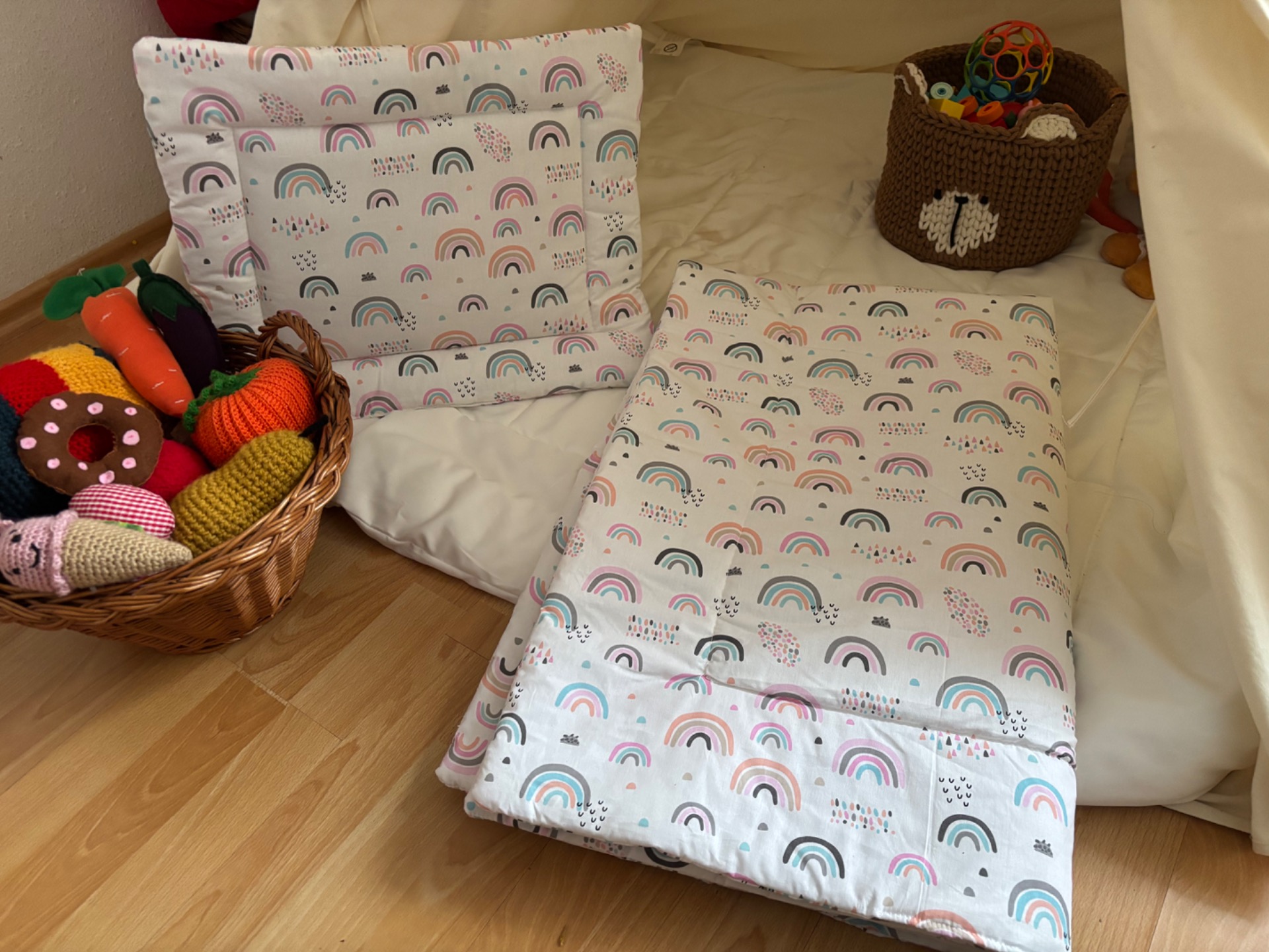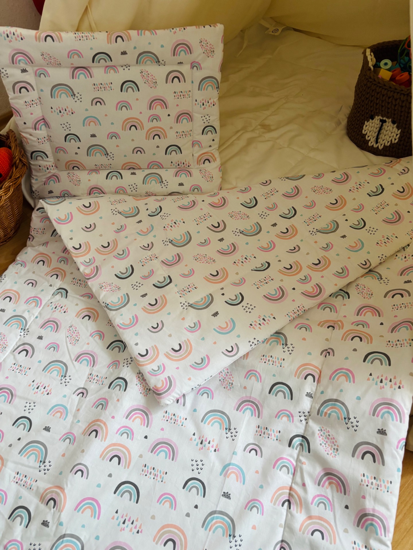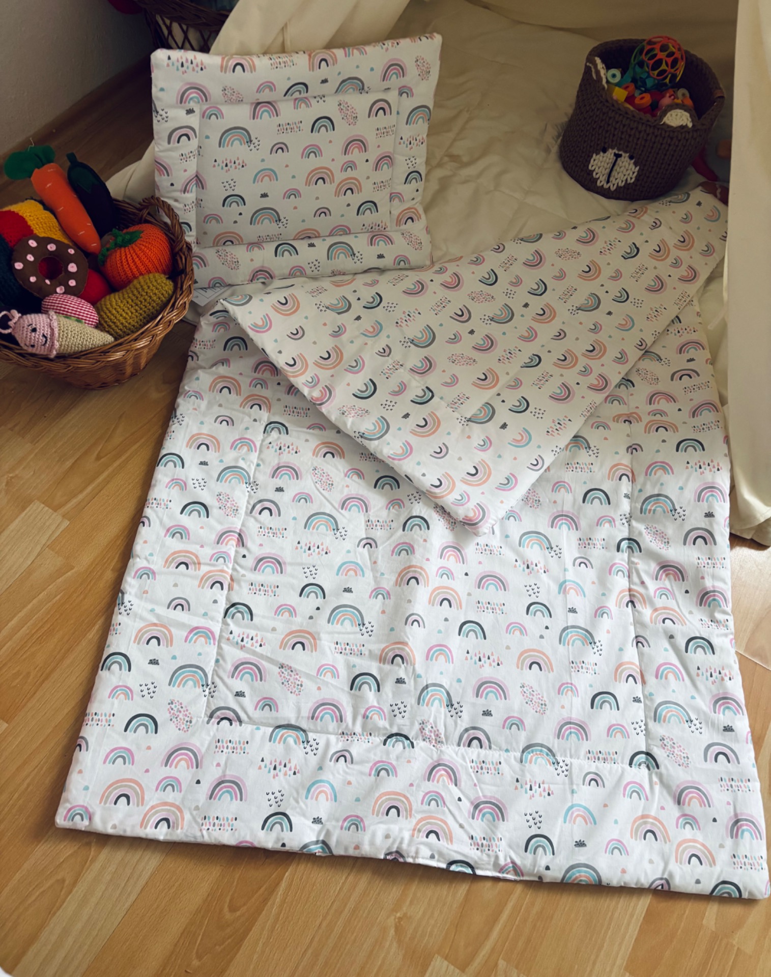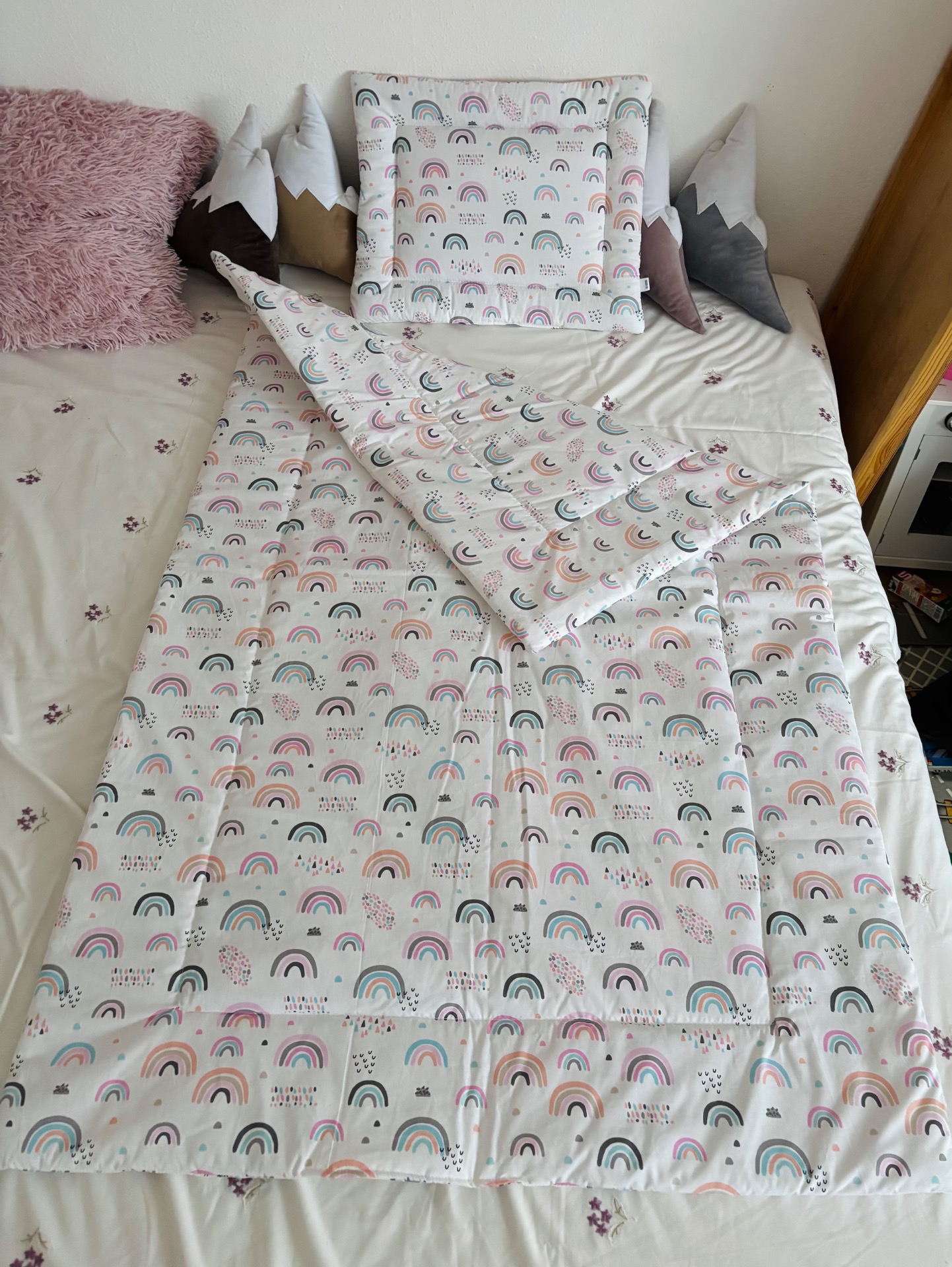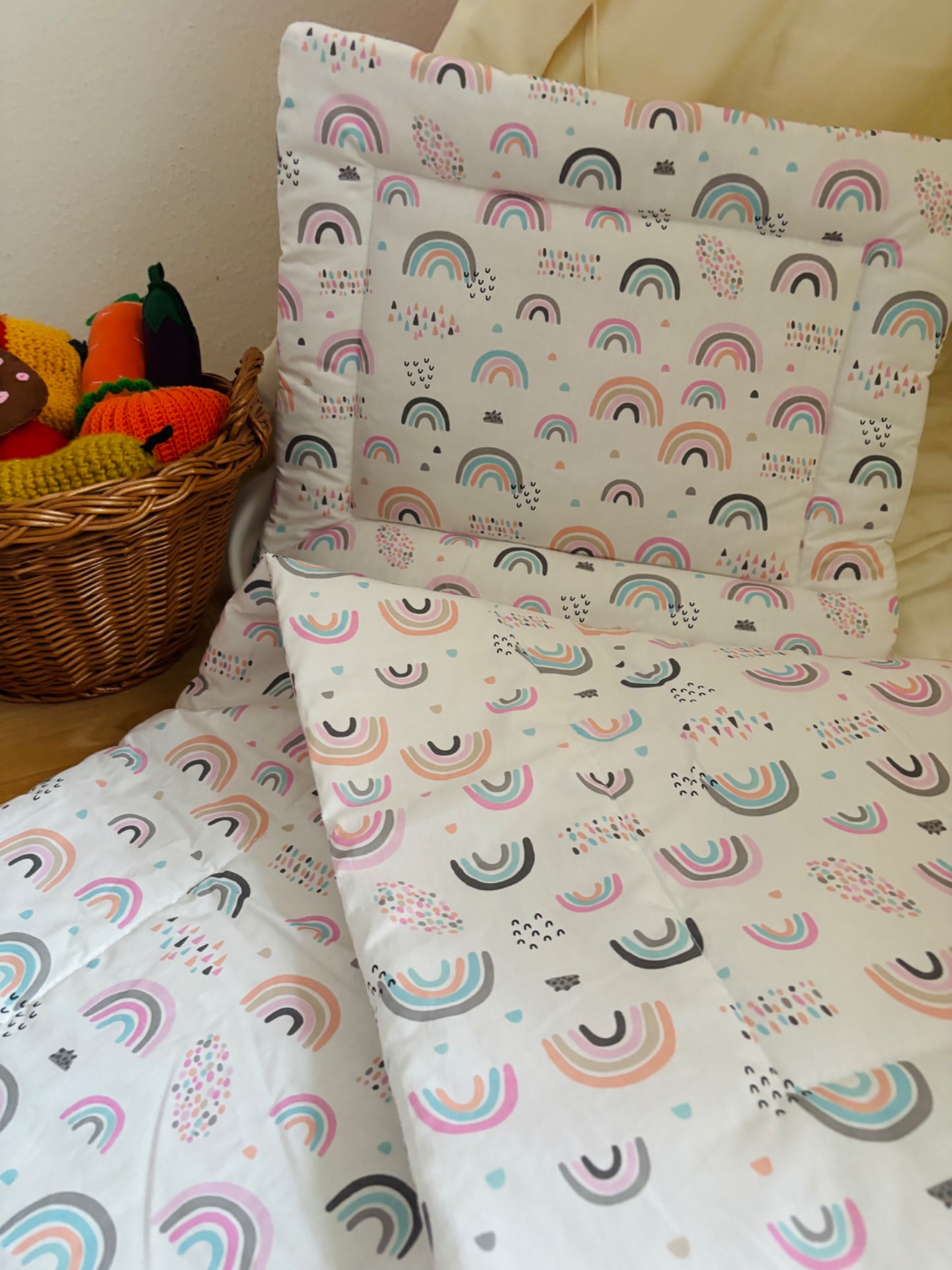 Bélelt ágynemű szett (rózsaszín szivárványos)