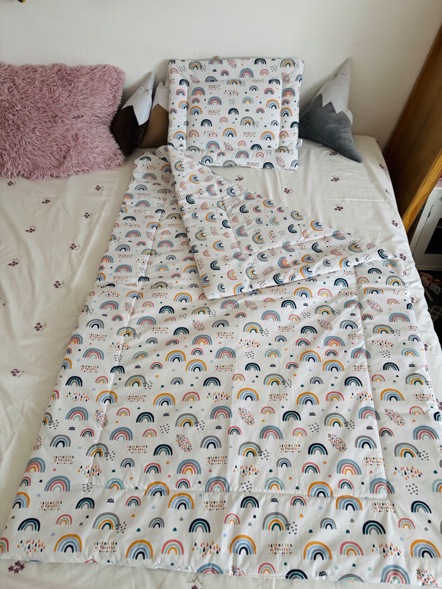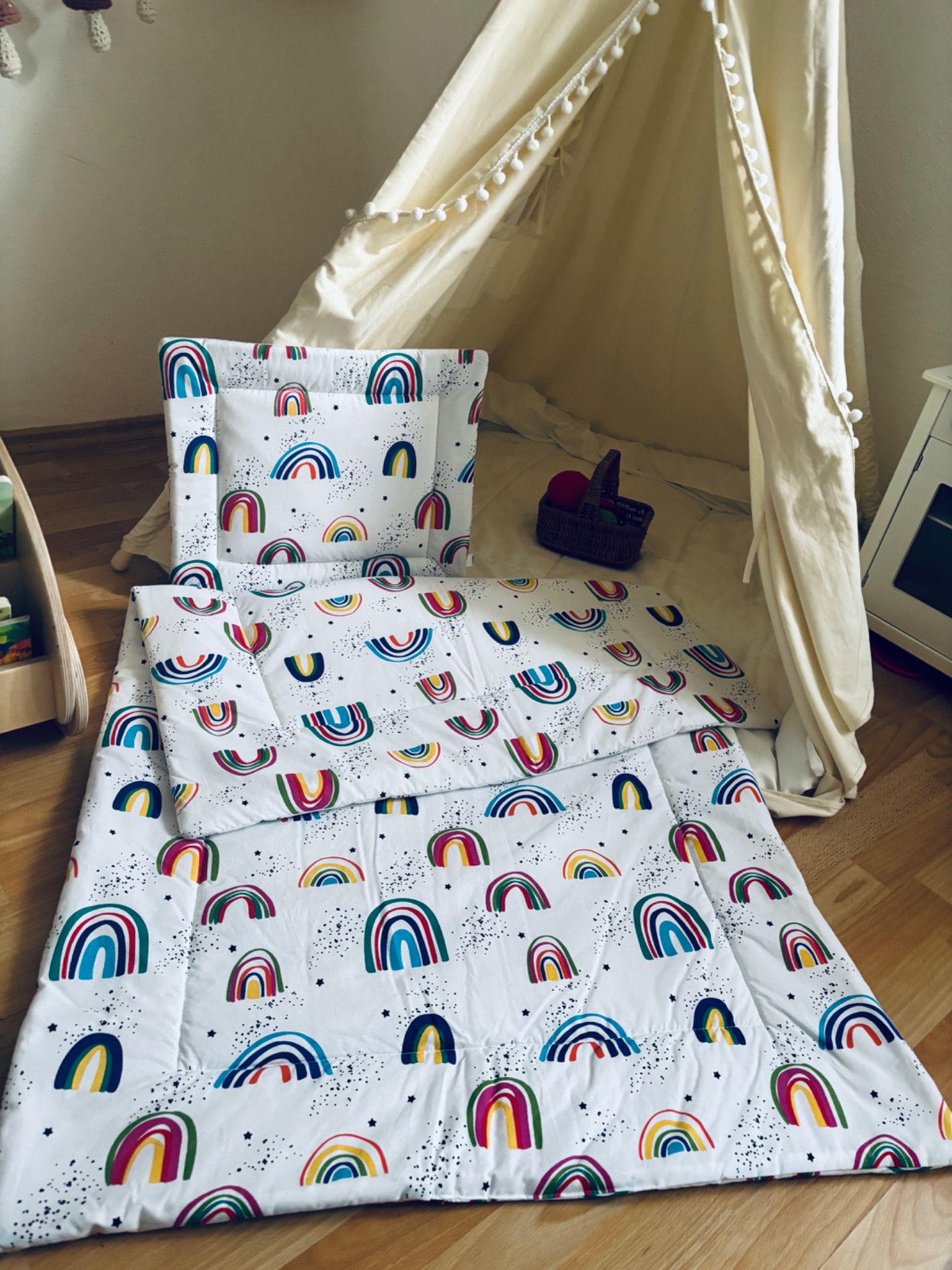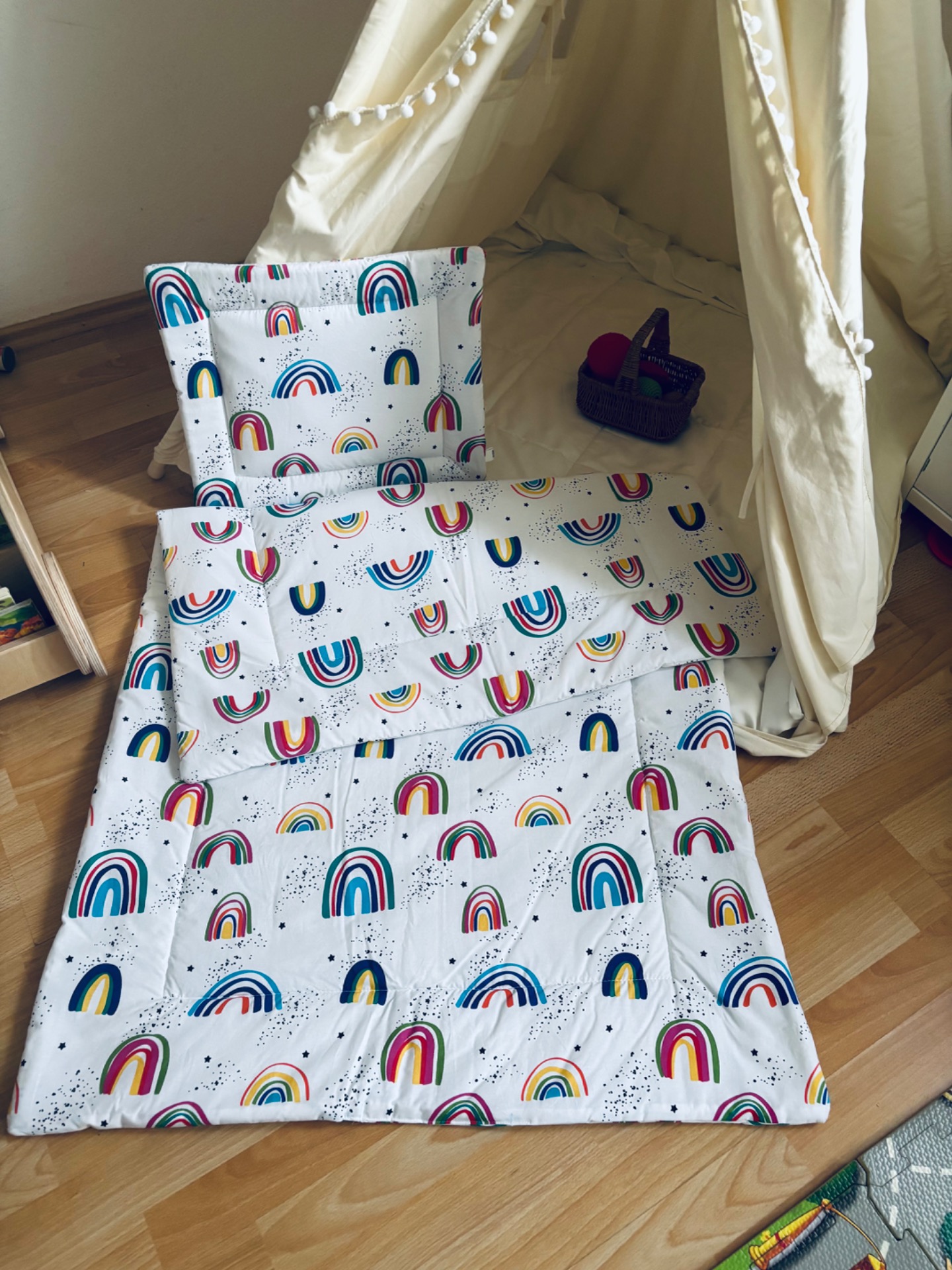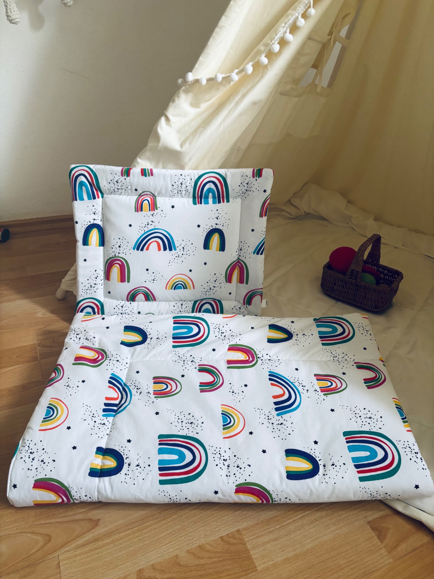 A párna és a takaró mindkét oldala pamutvászon anyagból készült közte 300 gramm vatelin töltettel.