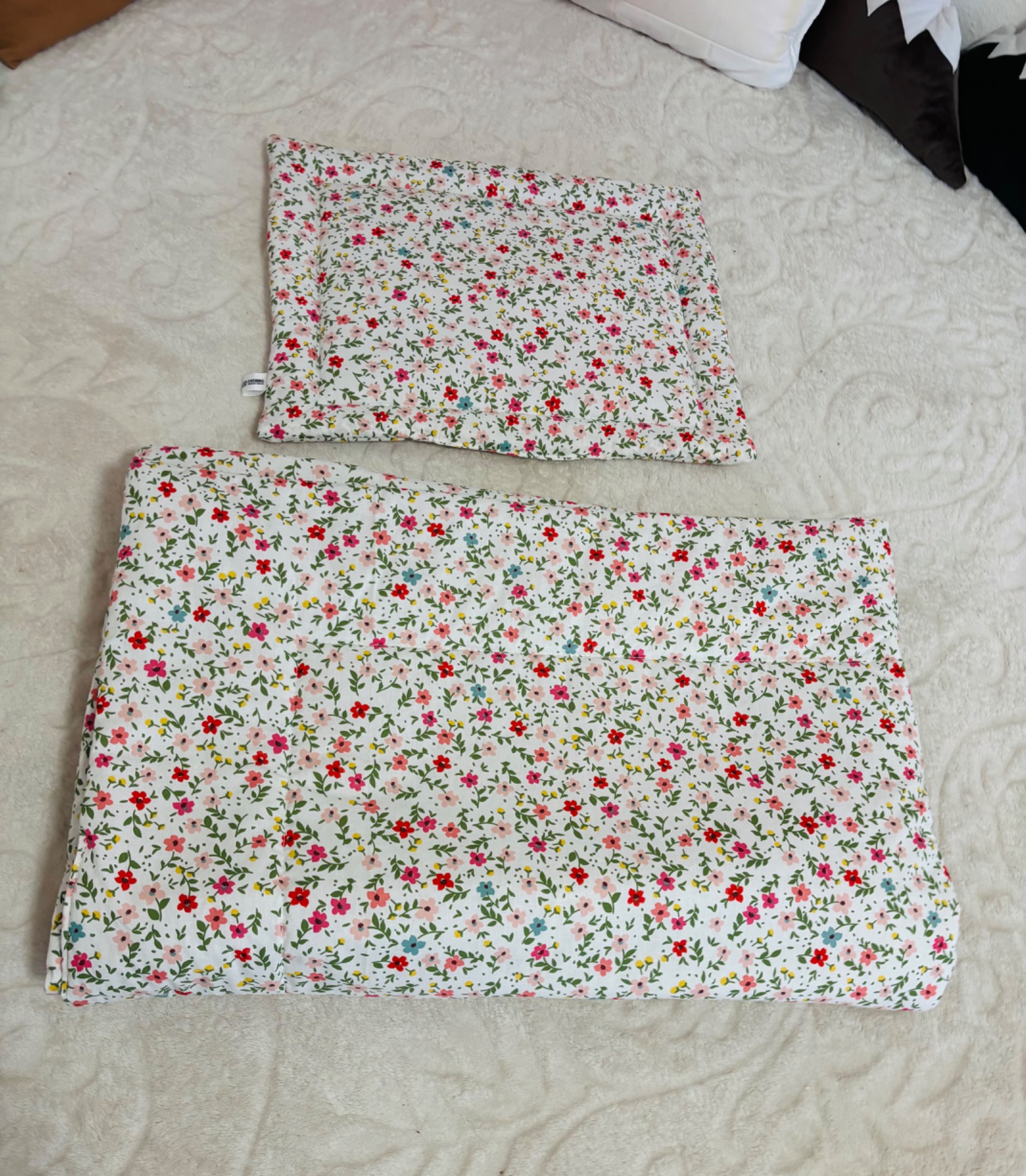 A párna és a takaró mindkét oldala pamutvászon anyagból készült közte 300 gramm vatelin töltettel.