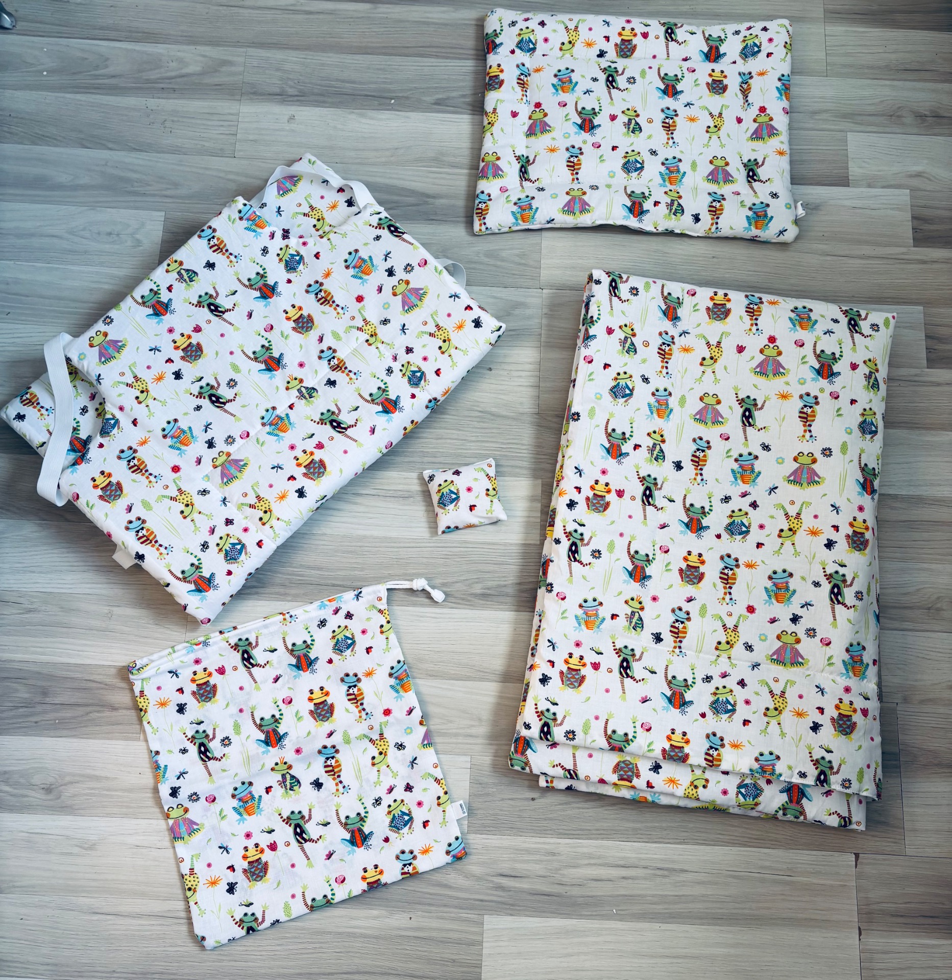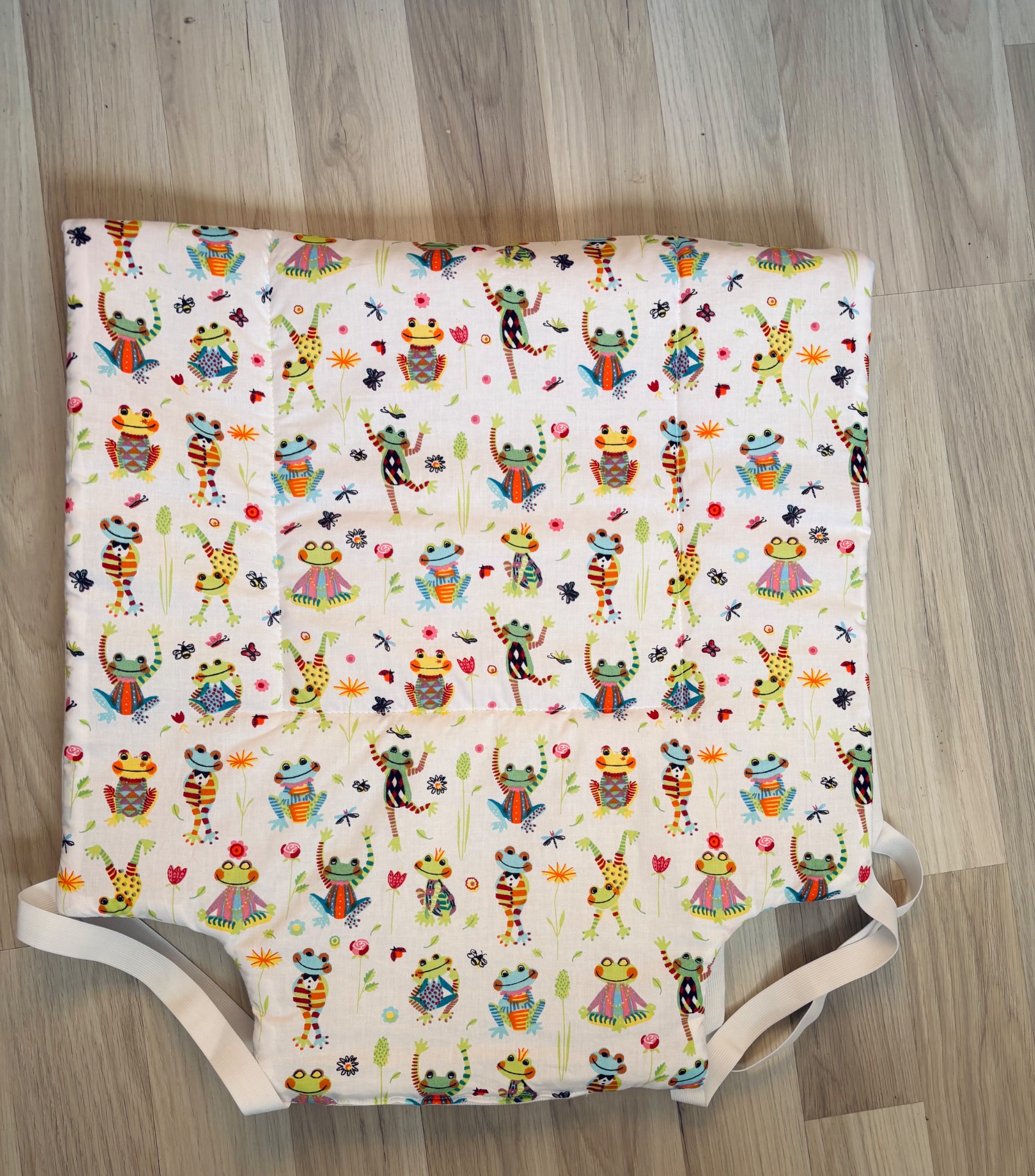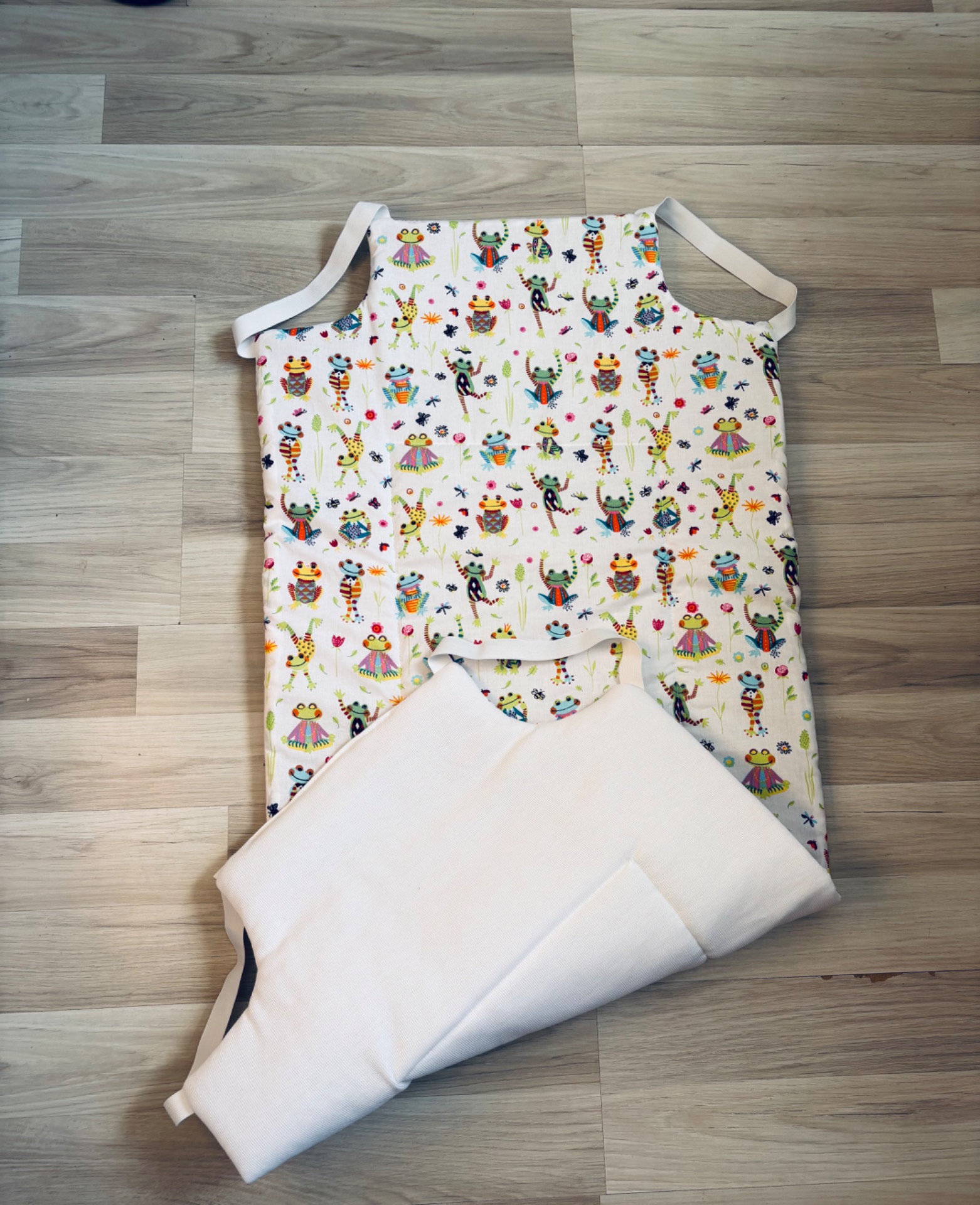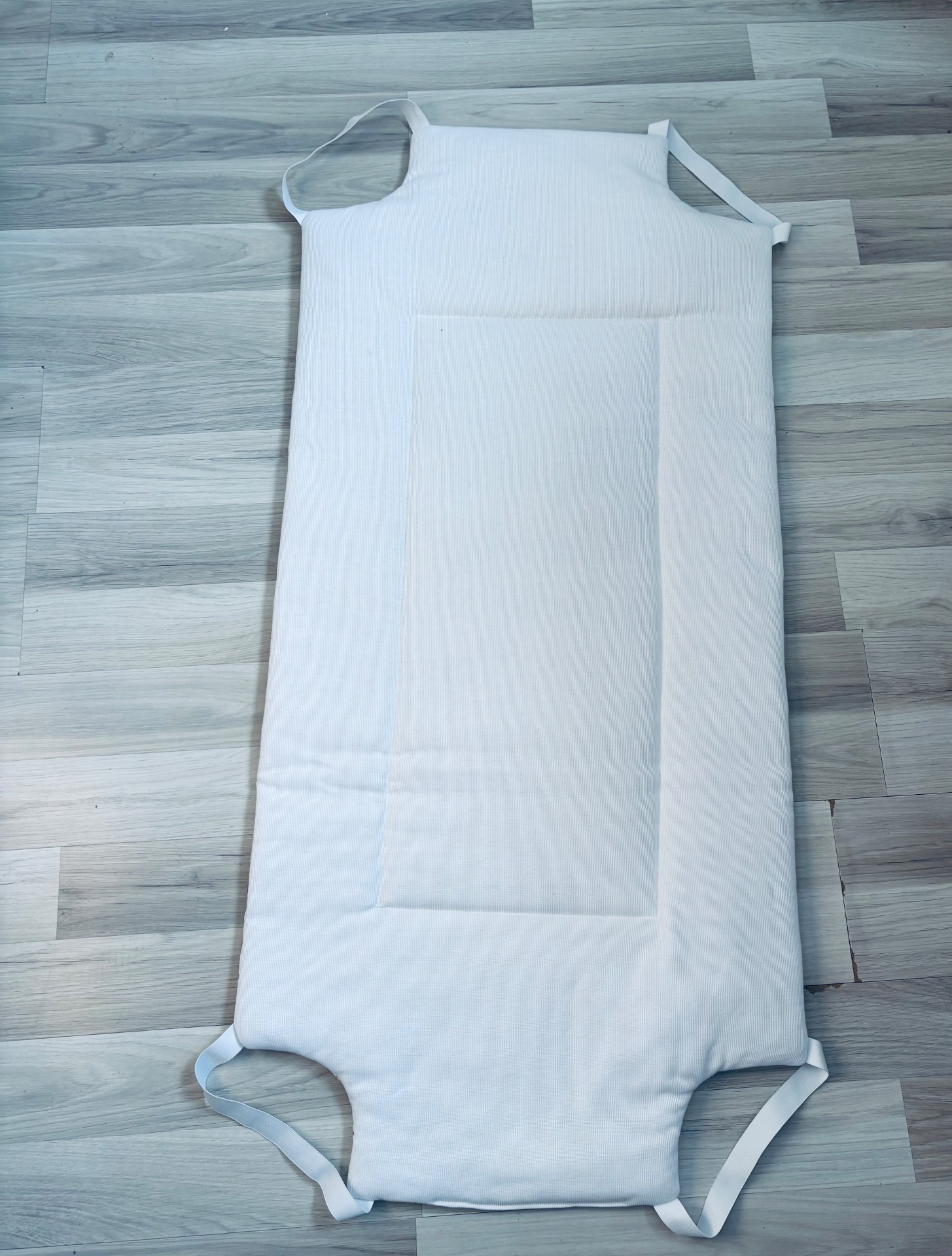 Mindkét oldala pamutból kèszült, közte vatelin töltet, oldalán gumikkal rögzített.