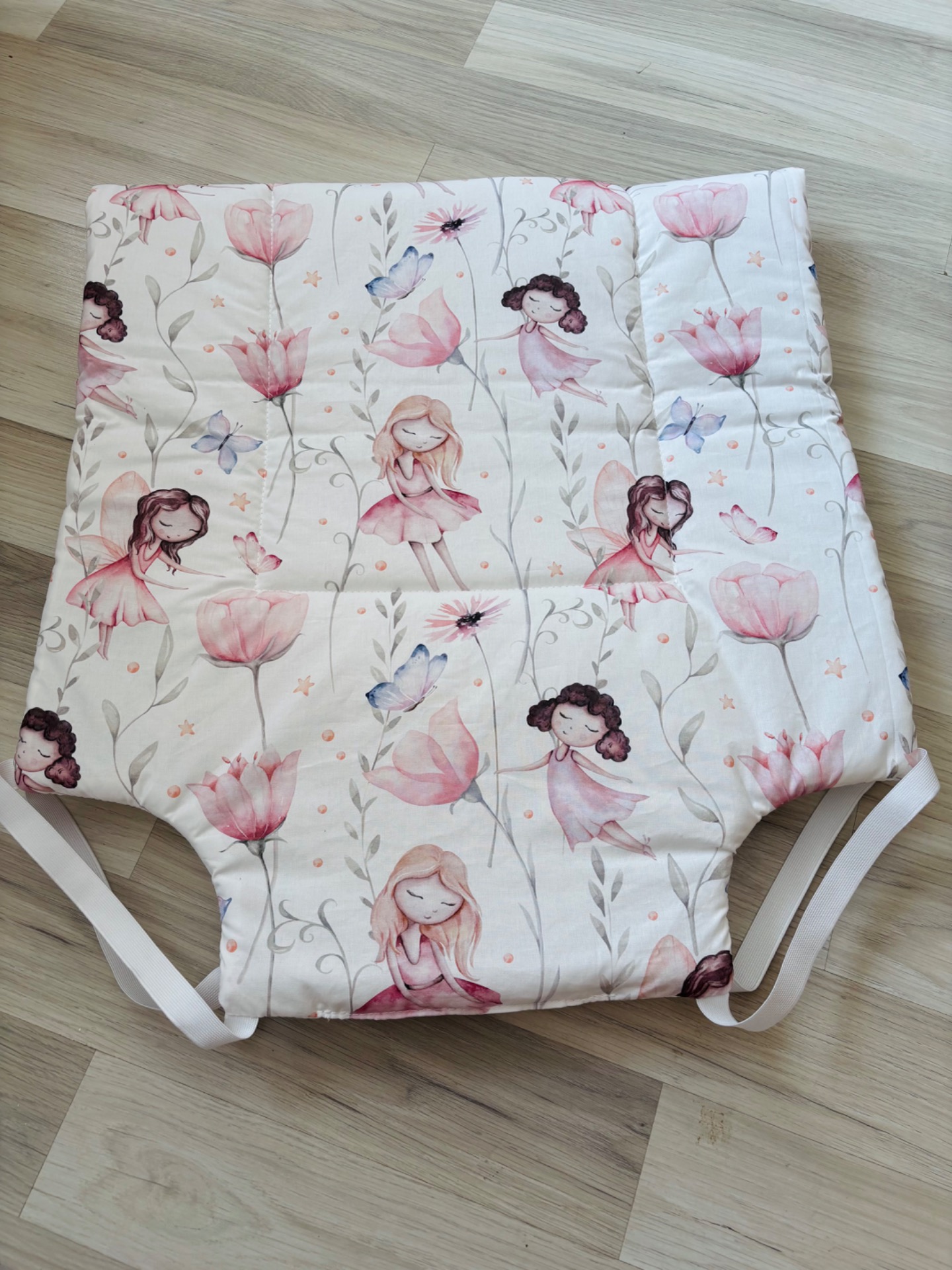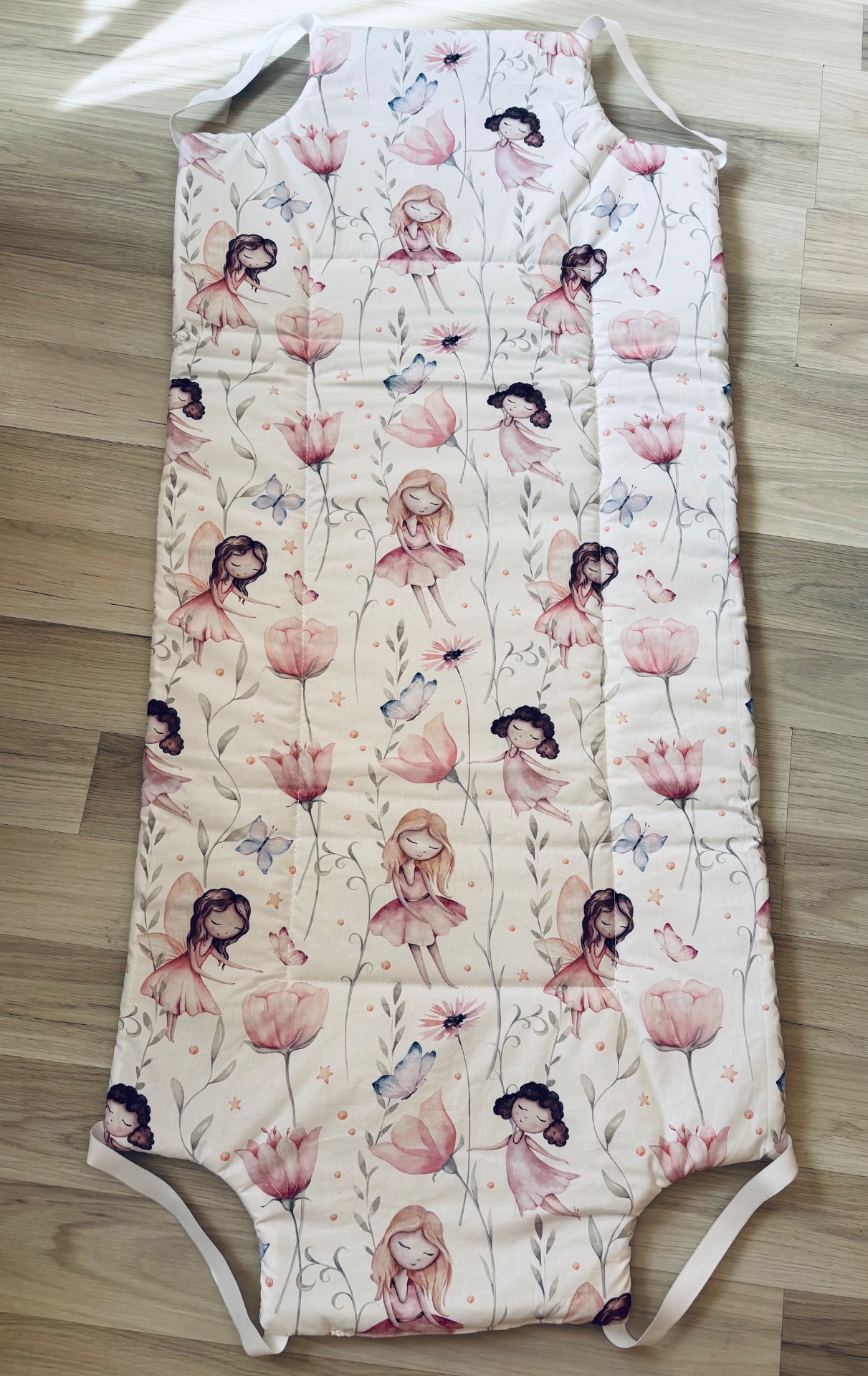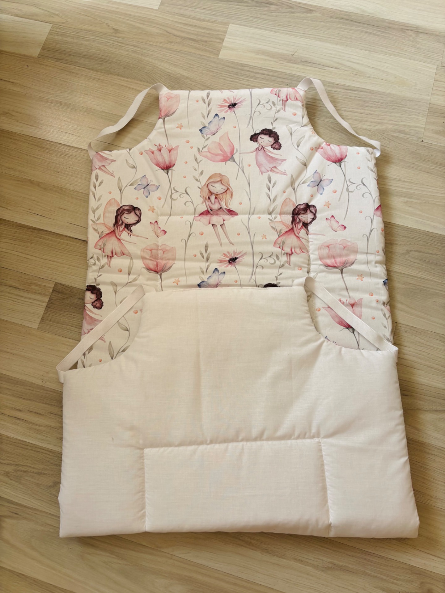 Mindkét oldala pamutból kèszült, közte vatelin töltet, oldalán gumikkal rögzített.