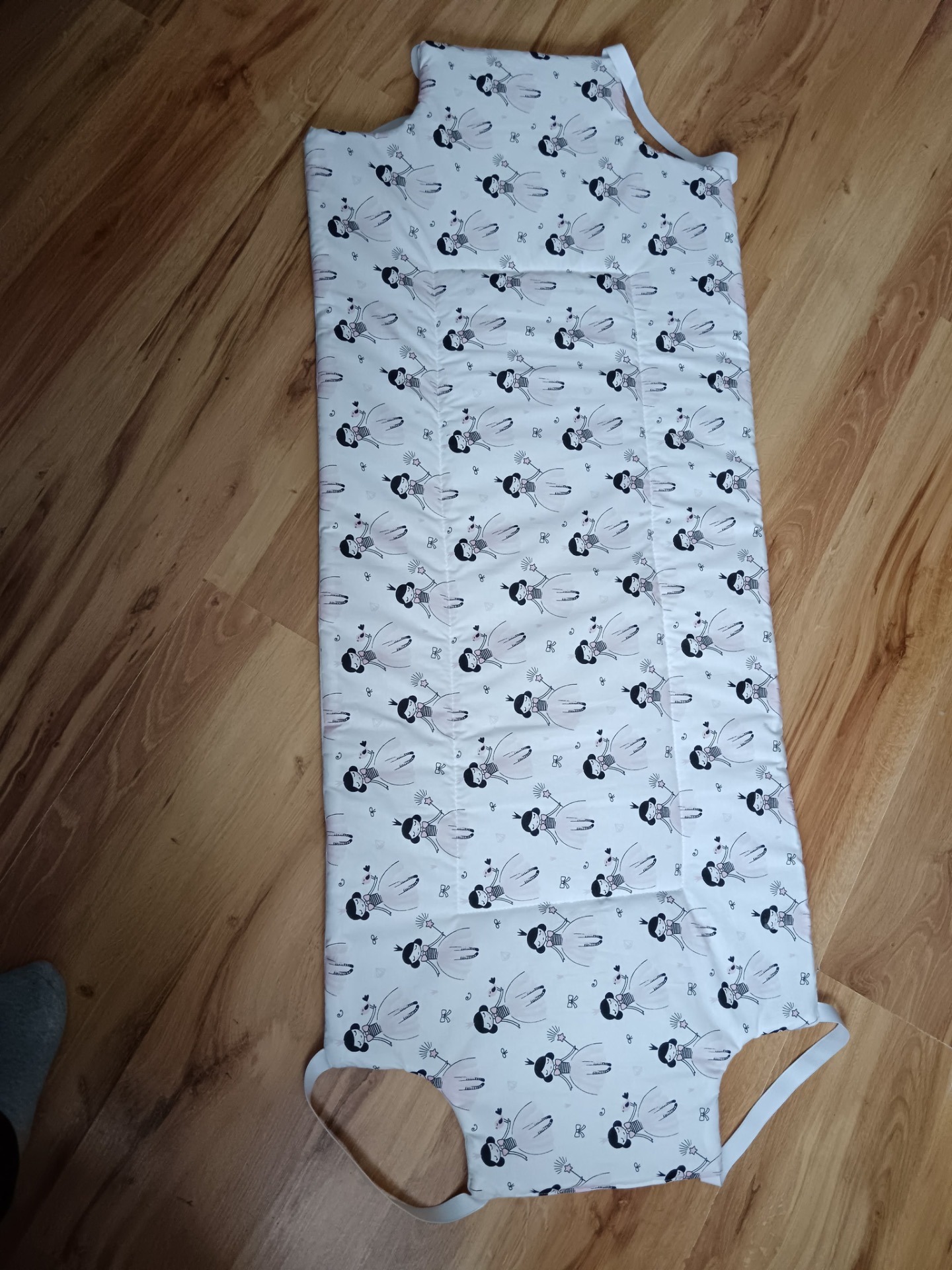 Mindkét oldala pamutból kèszült, közte vatelin töltet, oldalán gumikkal rögzített.