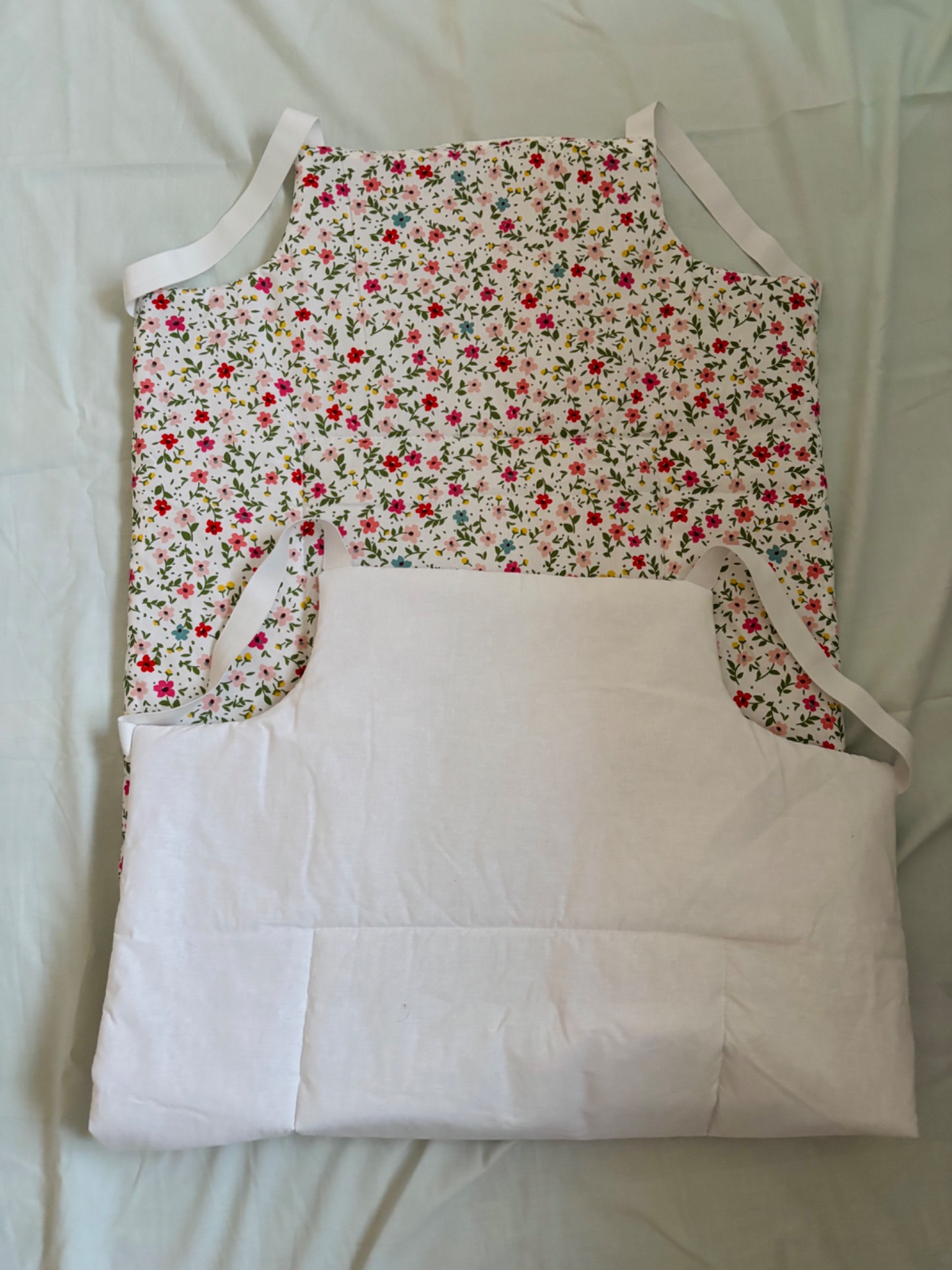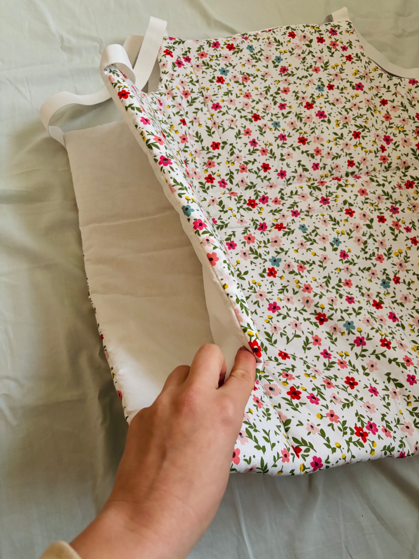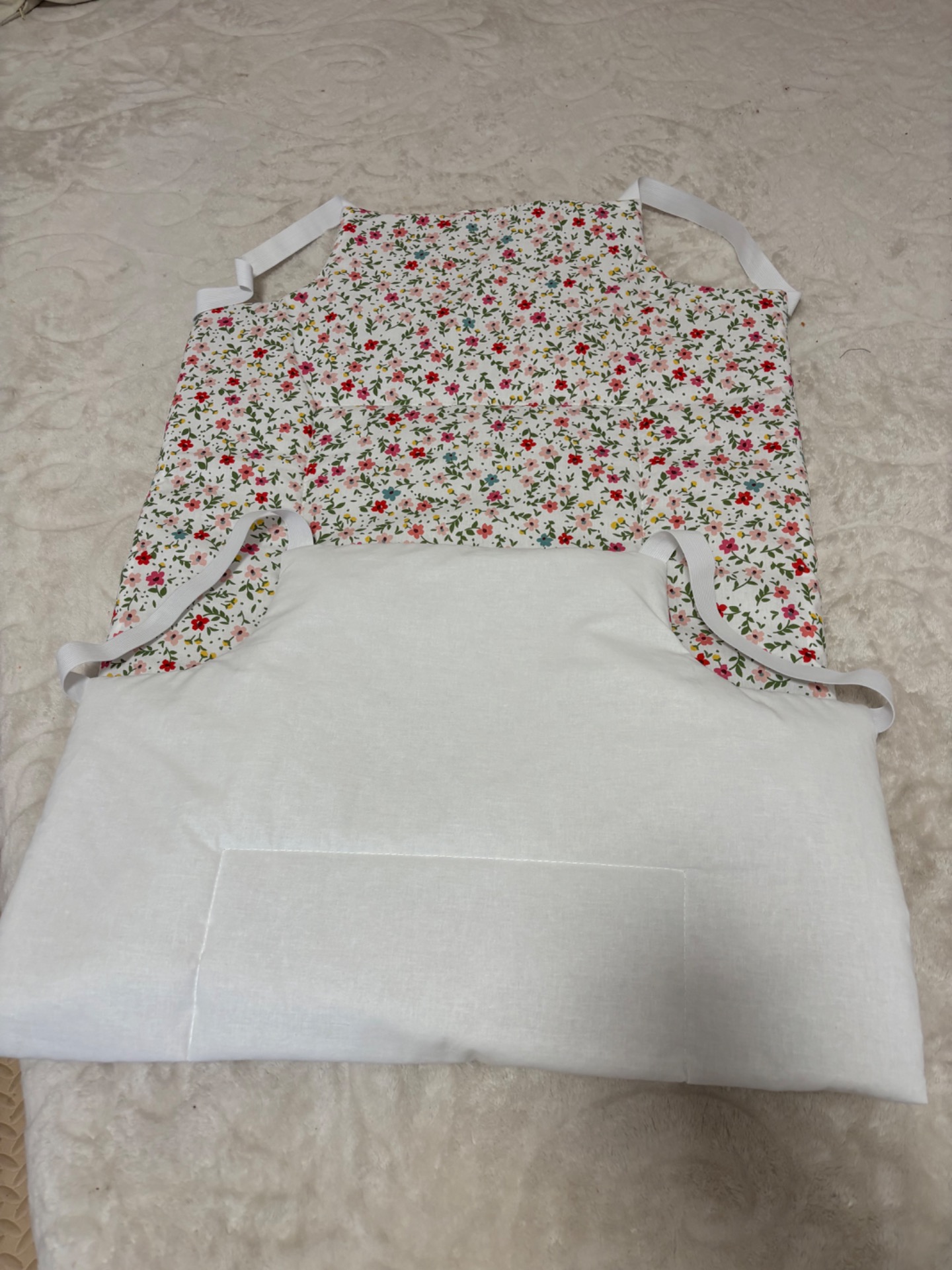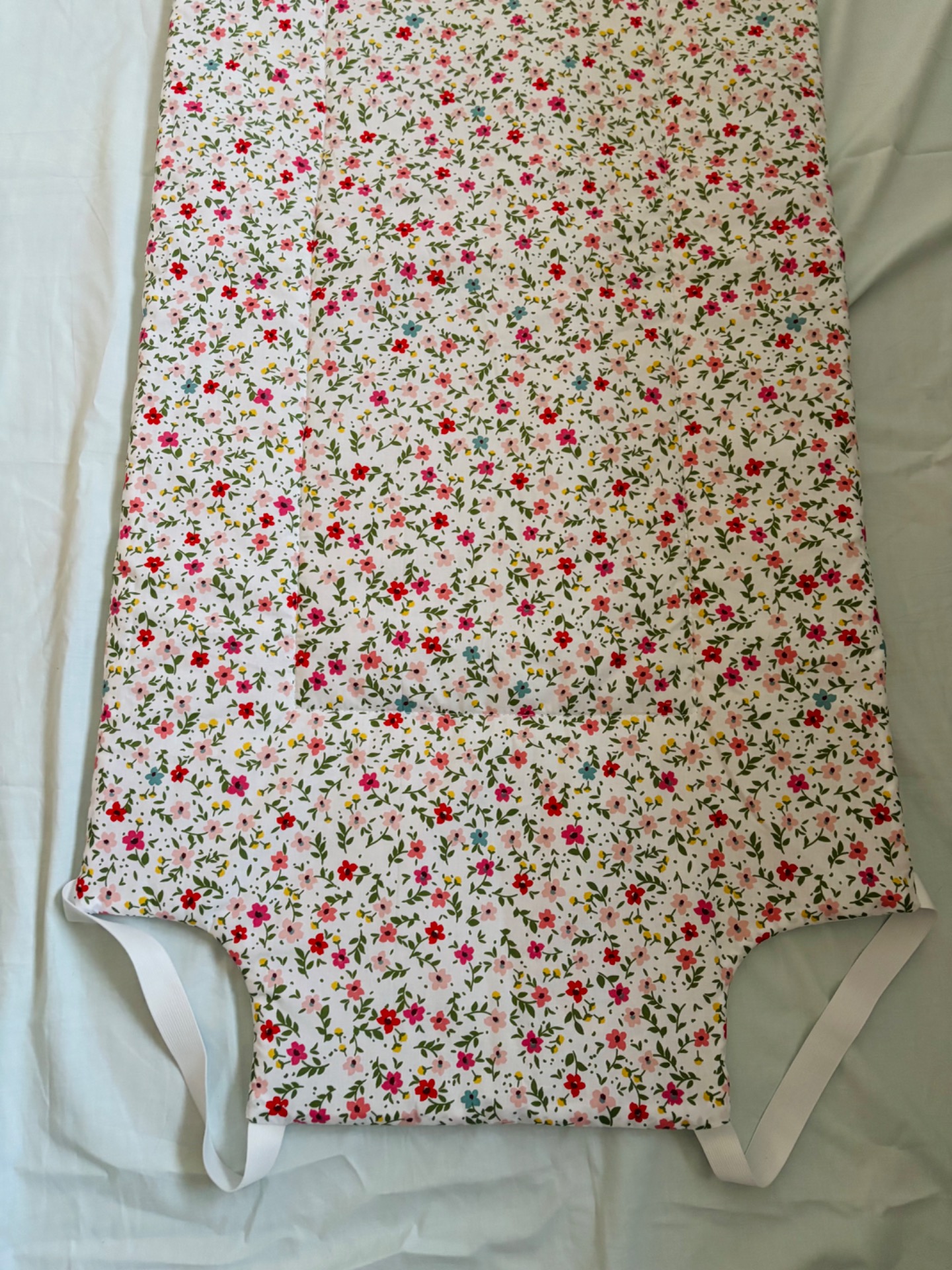 Mindkét oldala pamutból kèszült, közte vatelin töltet, oldalán gumikkal rögzített.
