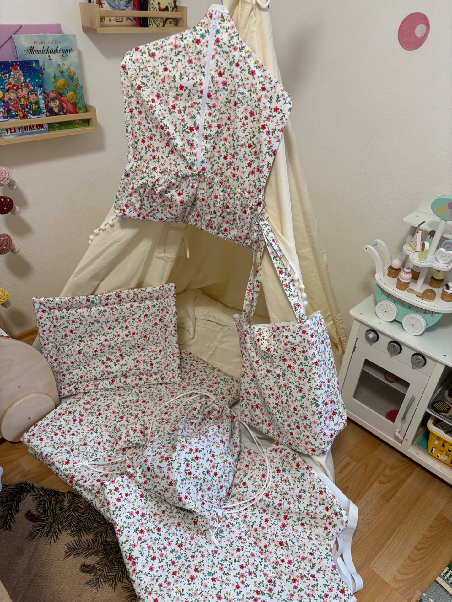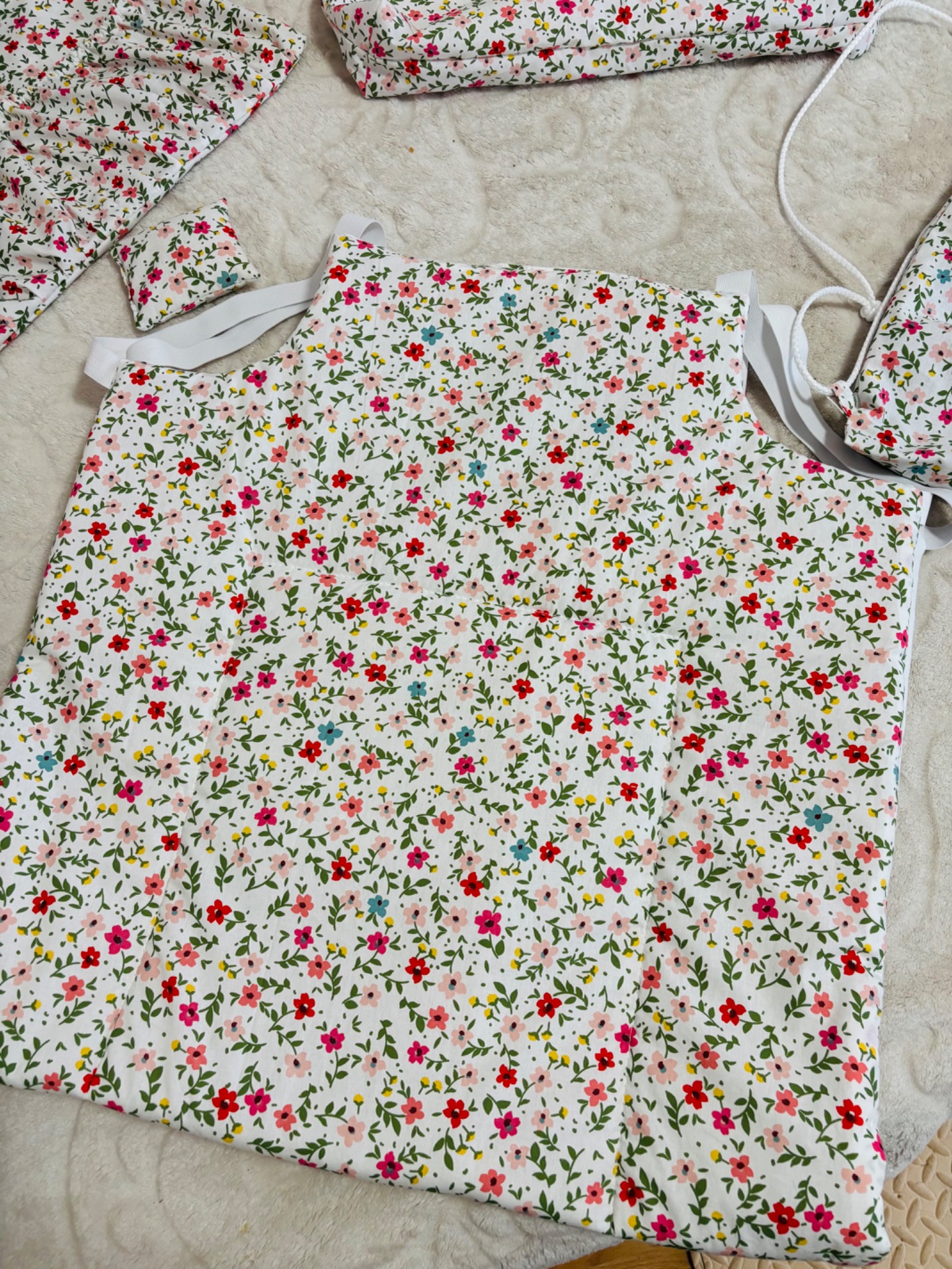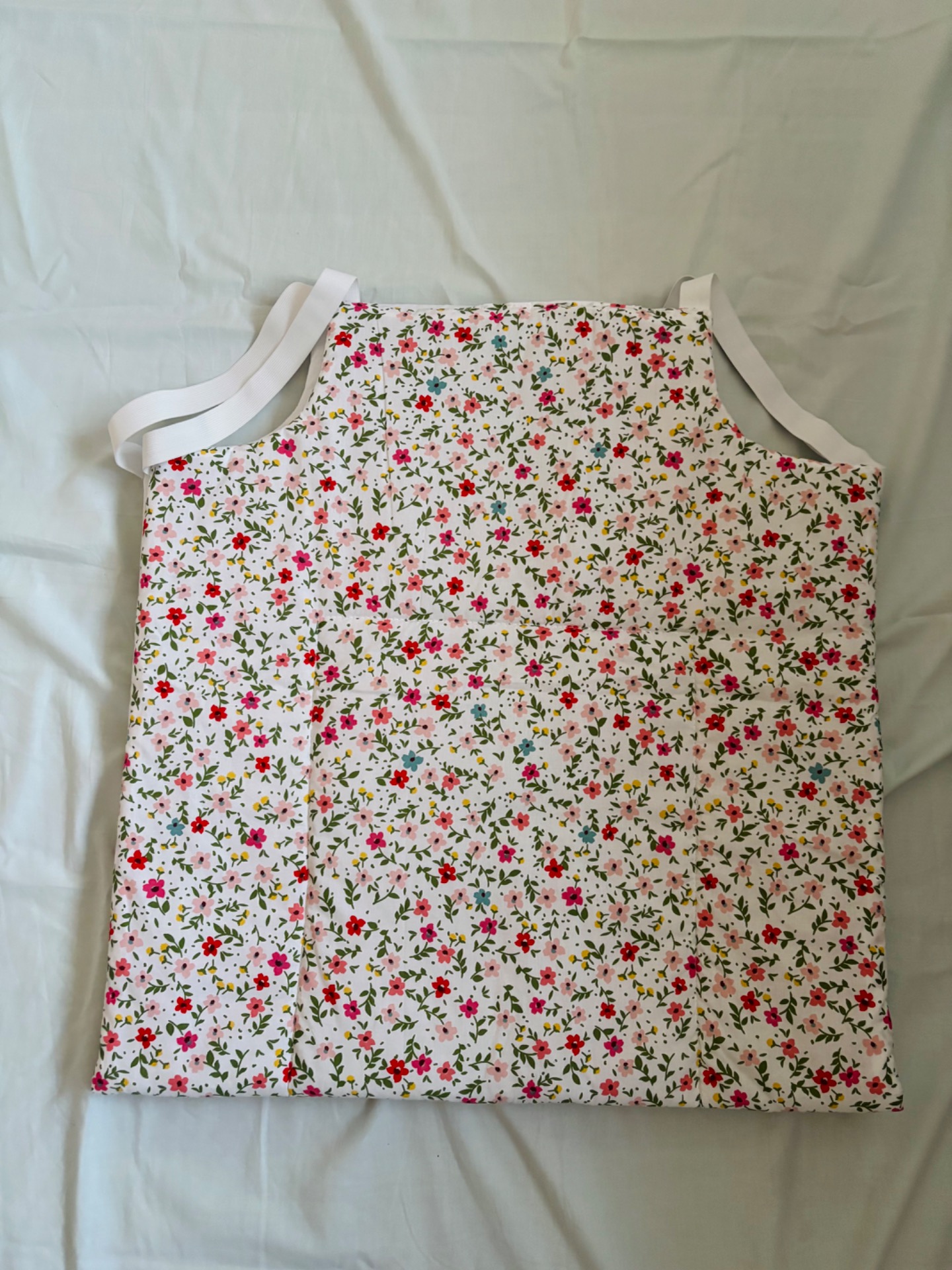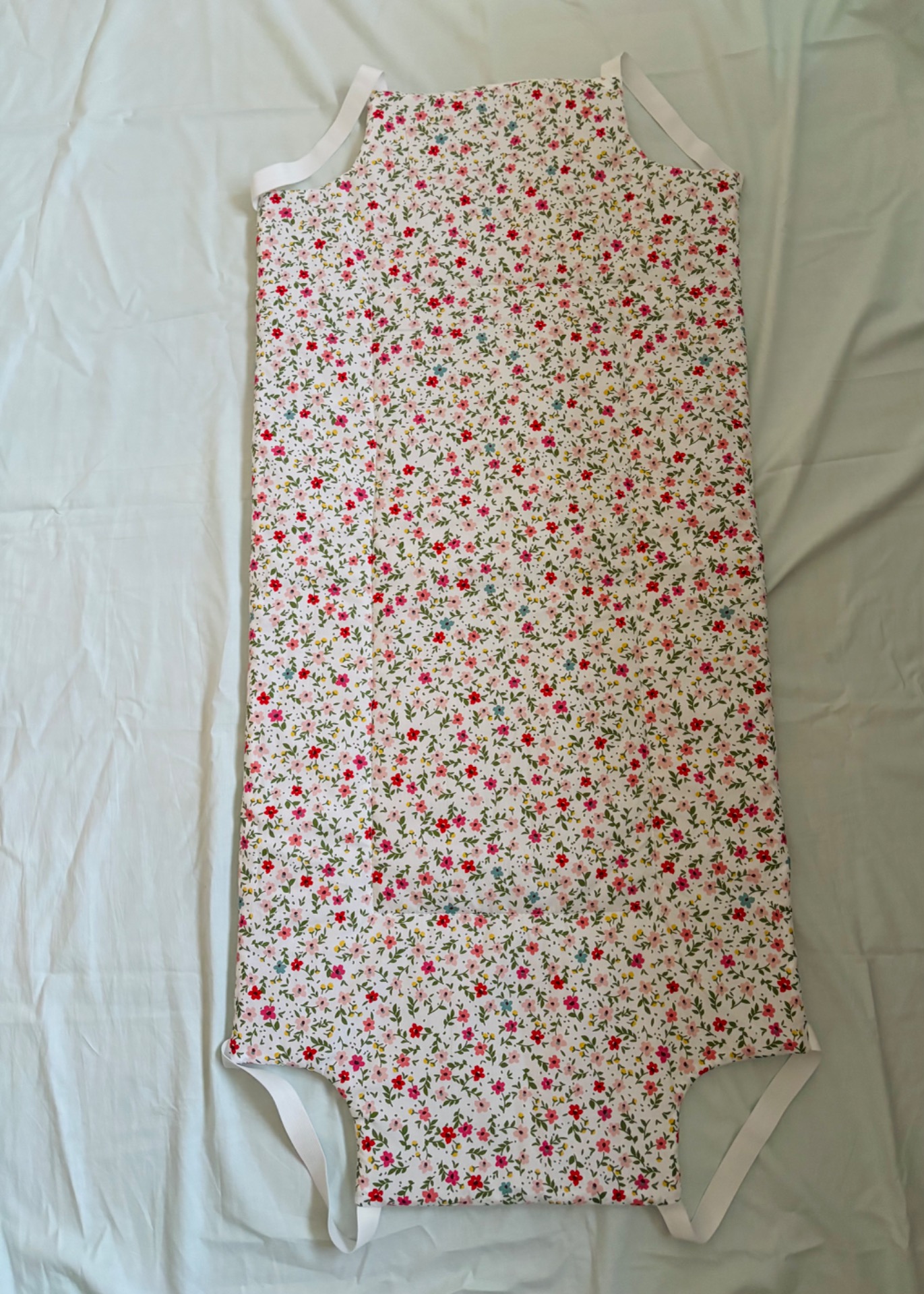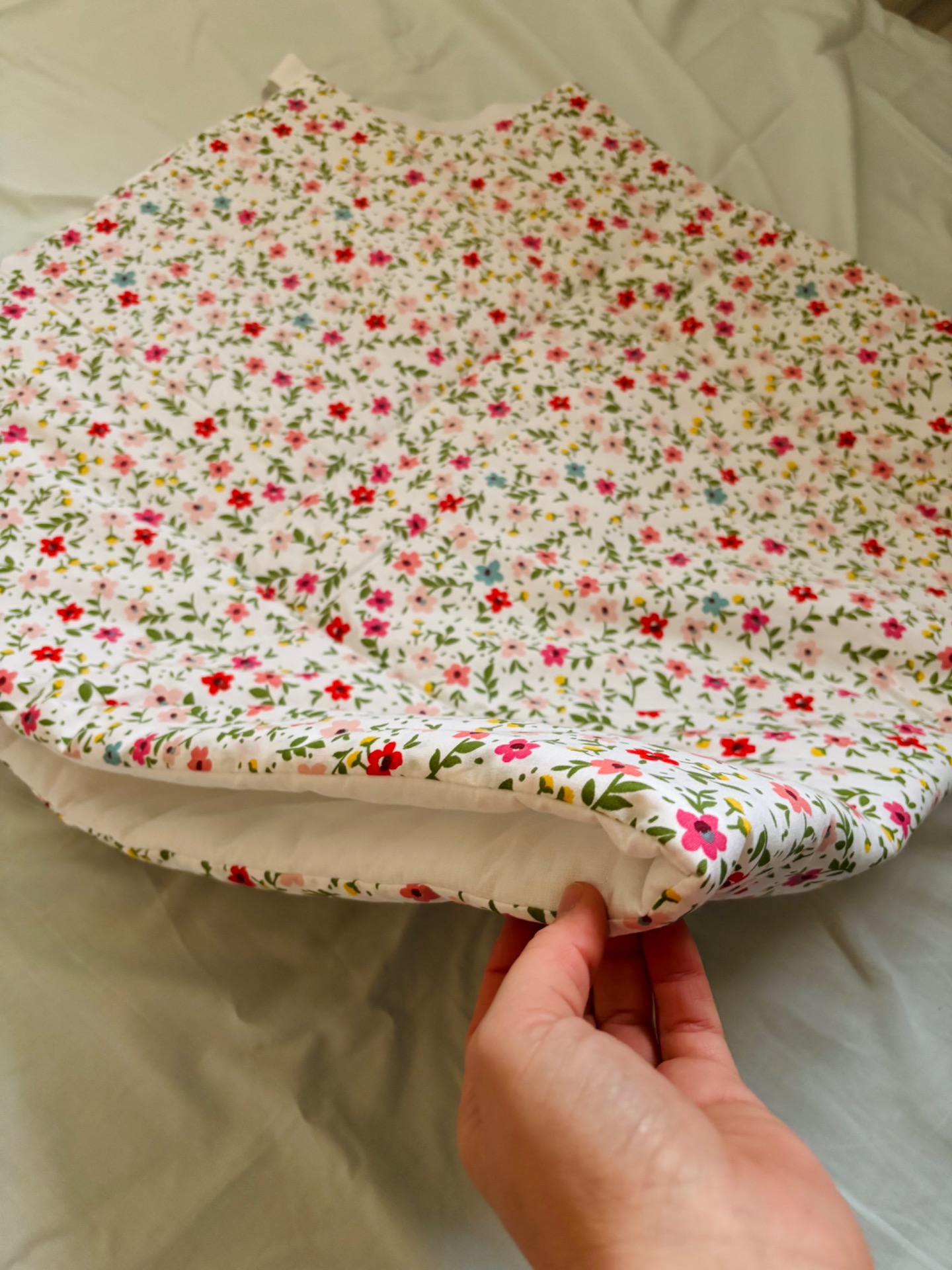 Mindkét oldala pamutból kèszült, közte vatelin töltet, oldalán gumikkal rögzített.