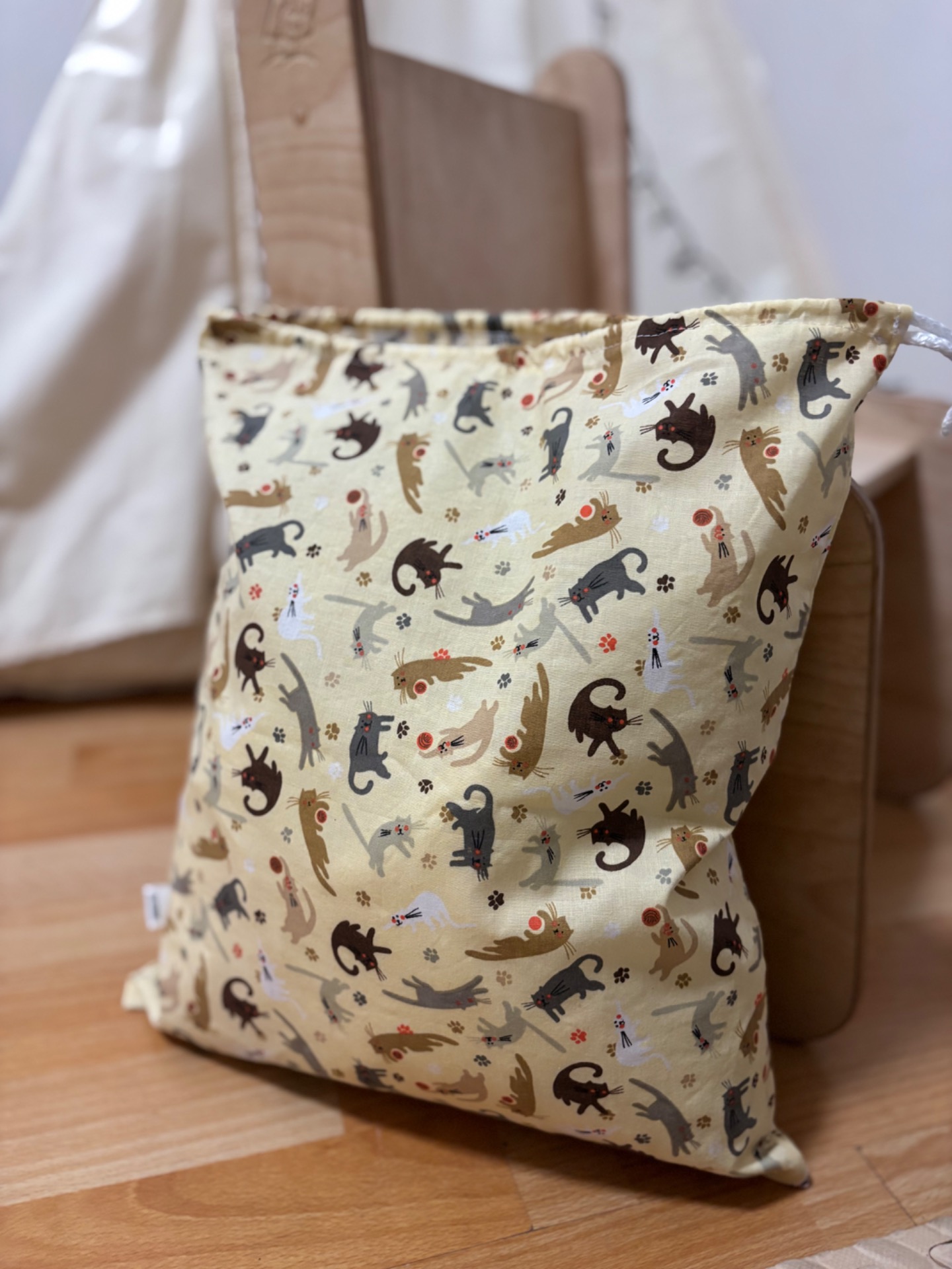 Pamutvászon anyagból készült, tetején húzózsinorral.