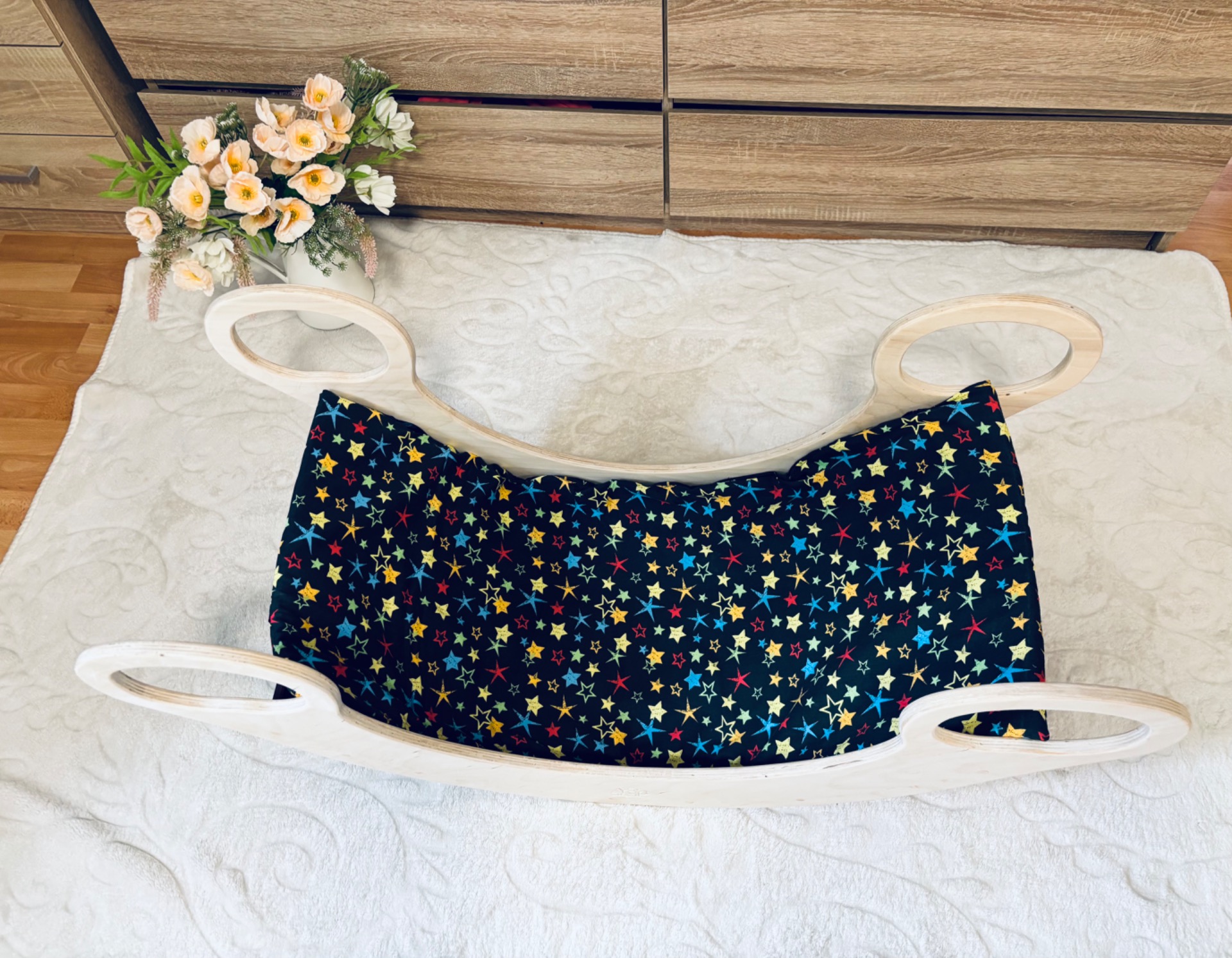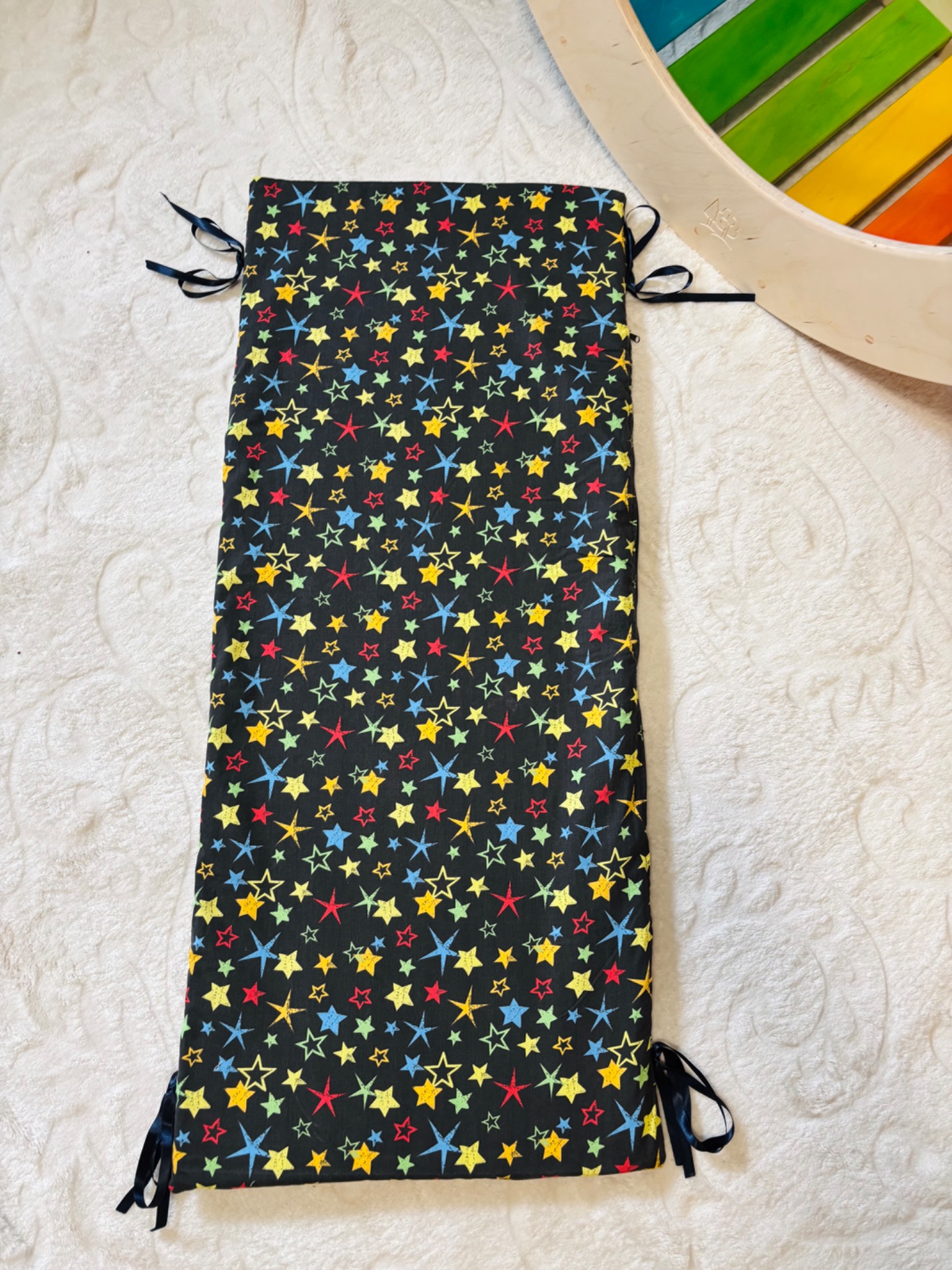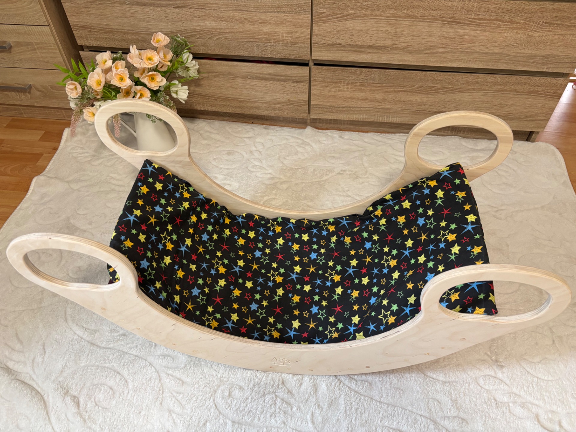 Pamutvászon anyagból készült,40 fokon mosógépben mosható, szárítógépben szárítható,vasalható,lecipzározható huzattal. 4 helyen odaköthető a hintához.