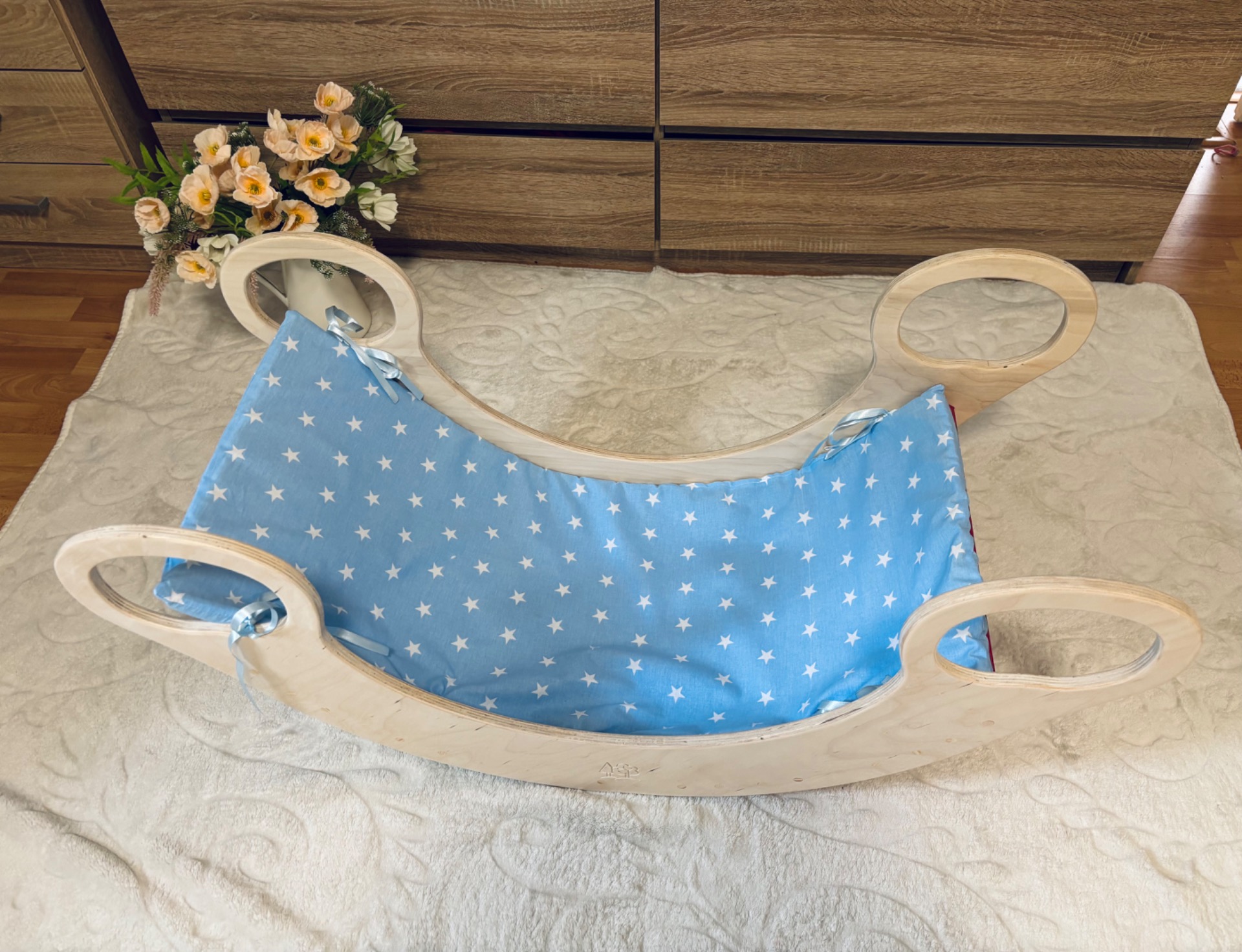 Pamutvászon anyagból készült,40 fokon mosógépben mosható, szárítógépben szárítható,vasalható,lecipzározható huzattal. 4 helyen odaköthető a hintához.