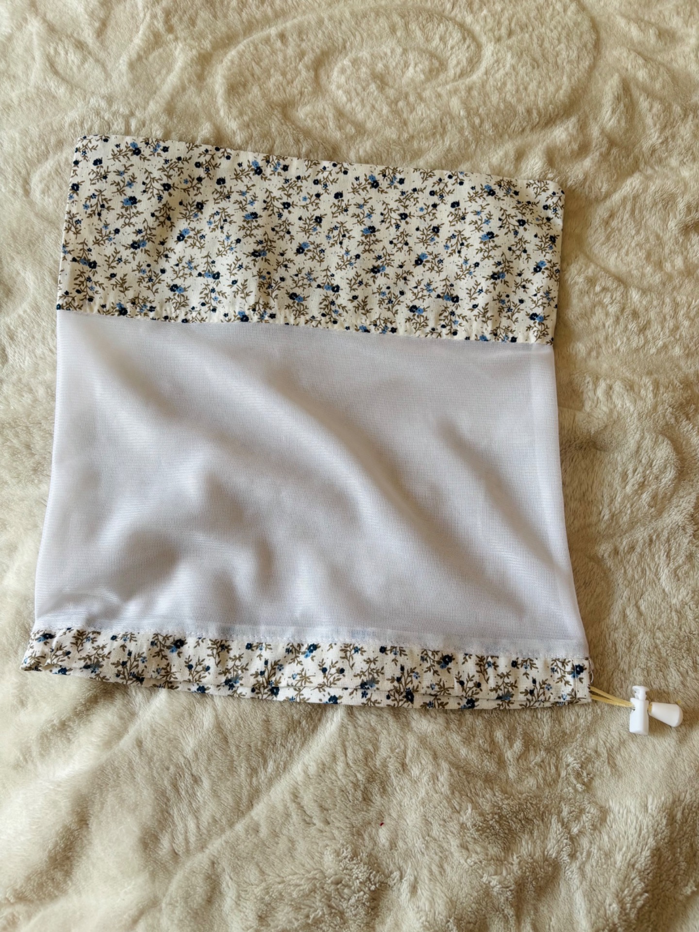Pamutvászon és háló felhasználásával készült pillekönnyű , 2-3 gramm súlyú. Nagyon sokáig használható, mosógépben mosható, a pamutvászon része vasalható.