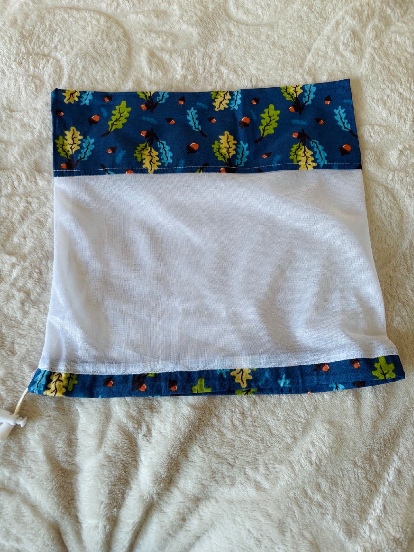 Pamutvászon és háló felhasználásával készült pillekönnyű , 2-3 gramm súlyú. Nagyon sokáig használható, mosógépben mosható, a pamutvászon része vasalható.