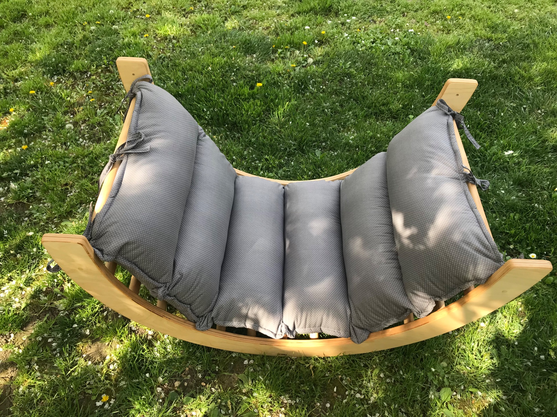 Anyaga: 21 mm-es nyírfa rétegelt lemez amit 15 db kőrisfa rúd köt össze. A felületét gyerekbarát lakkal kezeltük.