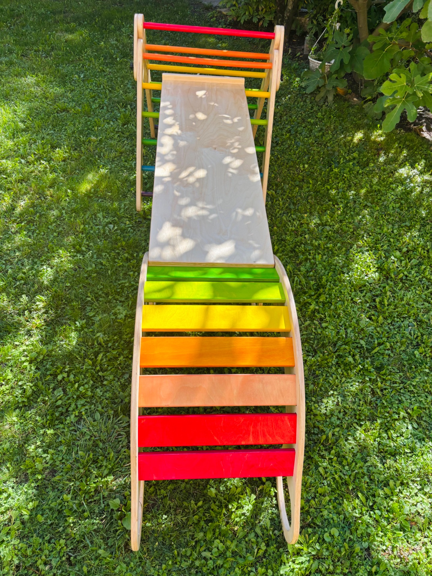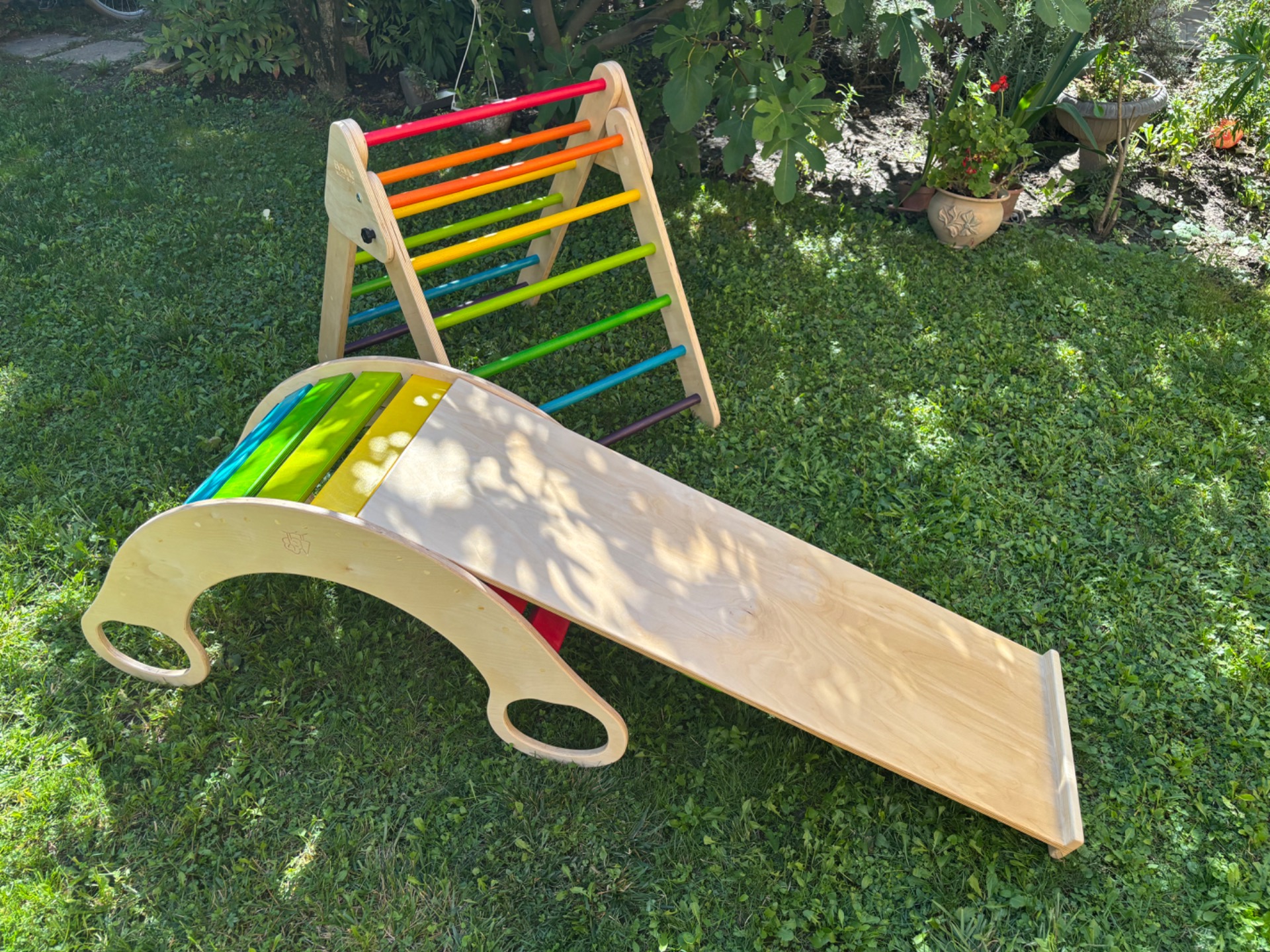 Egyik végén hintába, másik végén mászókába akaszható végű palló. Nyirfa rétegelt lemezből készül, hossza 115 cm, szélessége 37,5 cm.