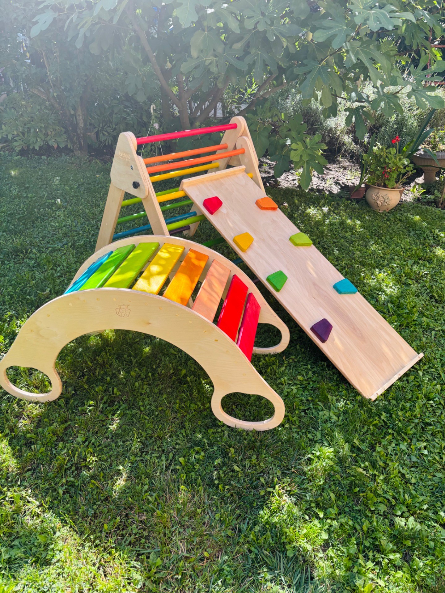Egyik oldala csúszda, másik oldalán 7 db kapaszkodó segíti a mászást.