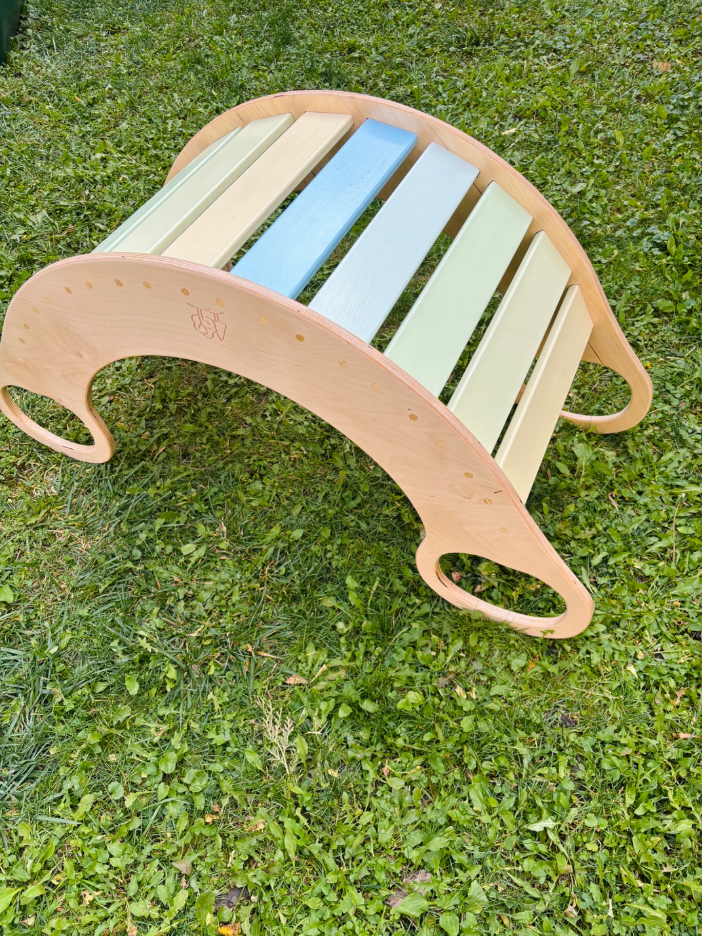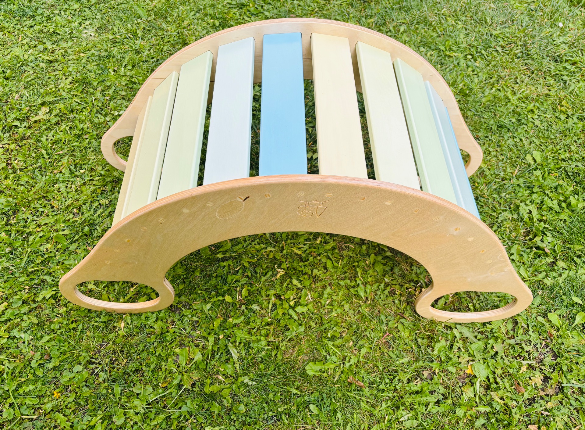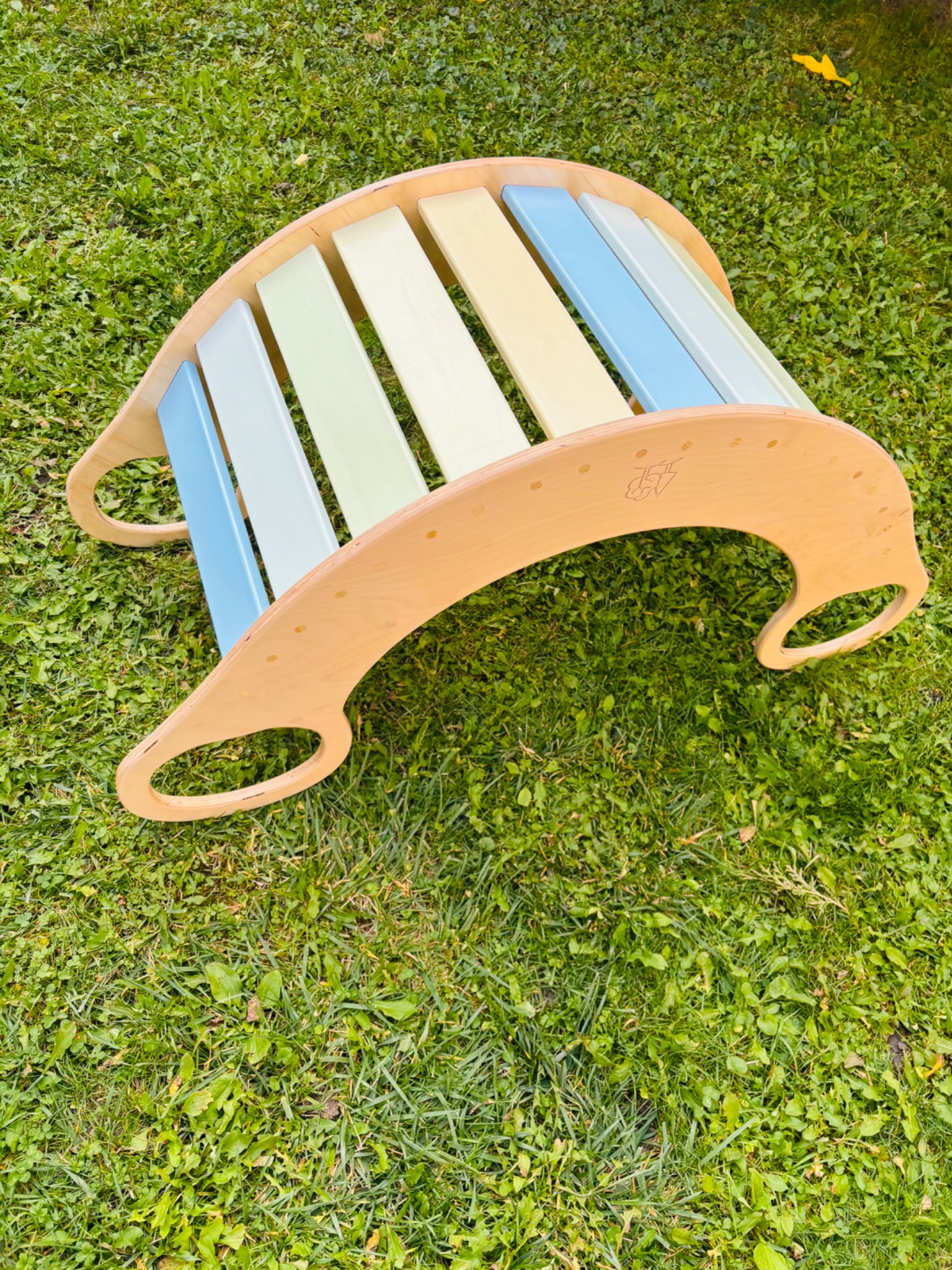 A szivárványhinta segíti a gyerekek motoros képességeinek helyes fejlődését. Használhatják hintázásra, mászásra, csúszdázásra, de akár rejtekhelyként, asztalként, székként is funkcionálhat. A fogantyúk segítik a gyermekeket a hintázásban,valamint a hinta stabilitását biztosítja.