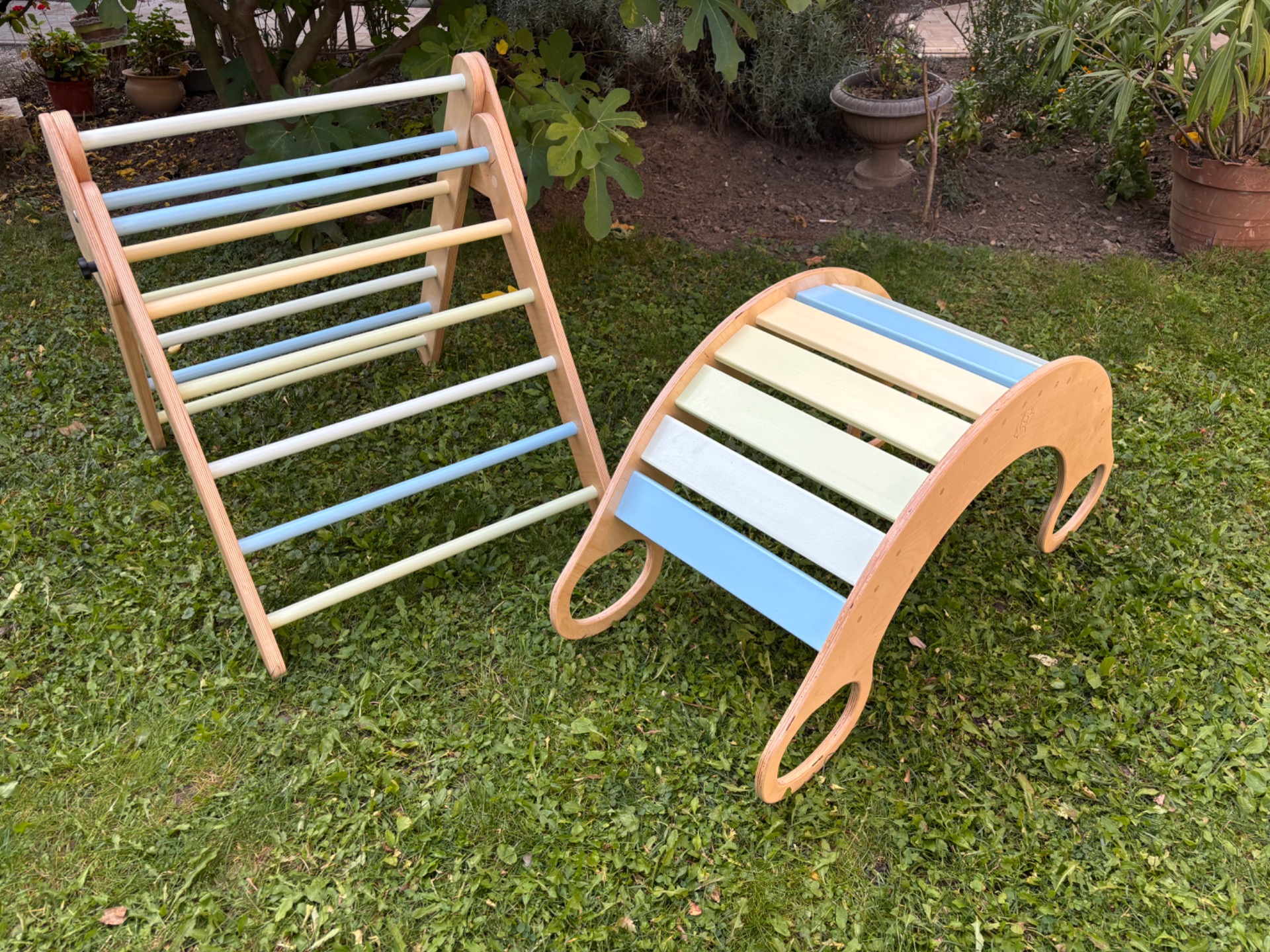 A hintához külön rendelhető palló, melynek egyik oldala mászóka, másik oldala csúszda kétféle méretben (115 cm és 150 cm hosszú).