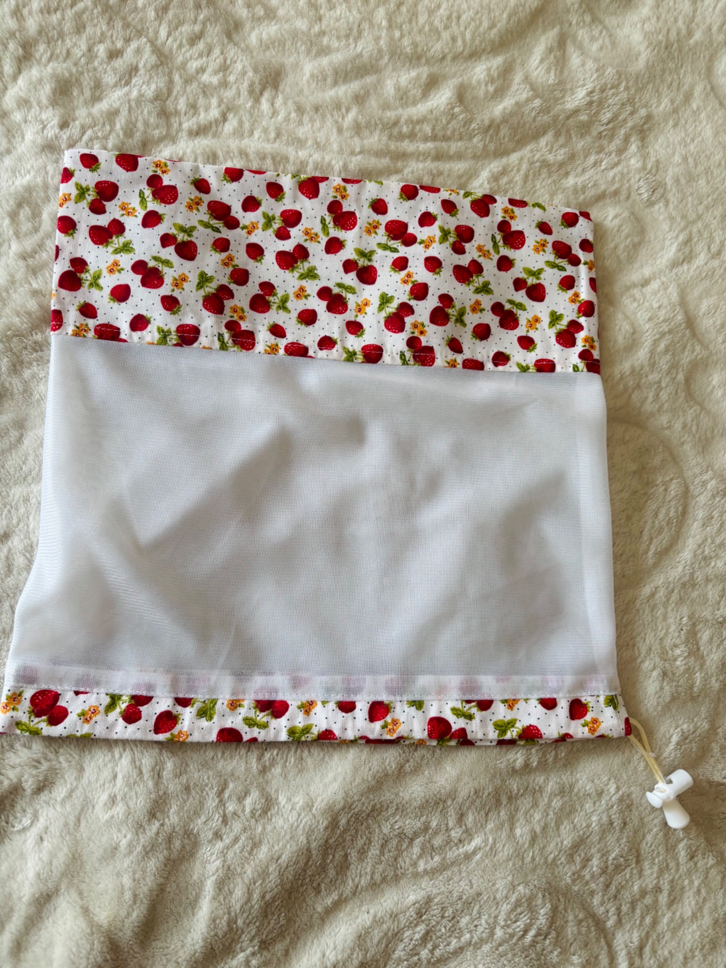 Pamutvászon és háló felhasználásával készült pillekönnyű , 2-3 gramm súlyú. Nagyon sokáig használható, mosógépben mosható, a pamutvászon része vasalható.