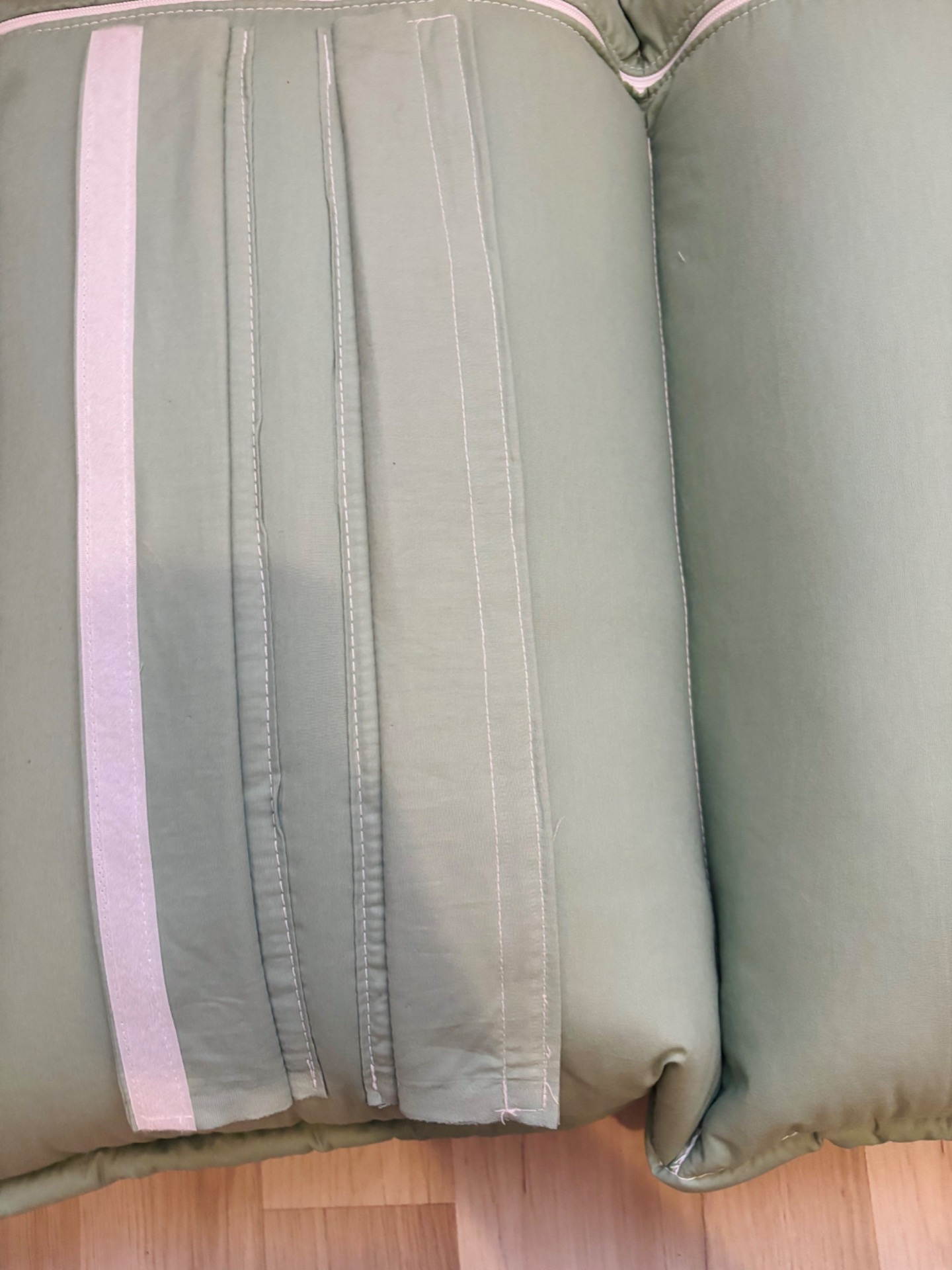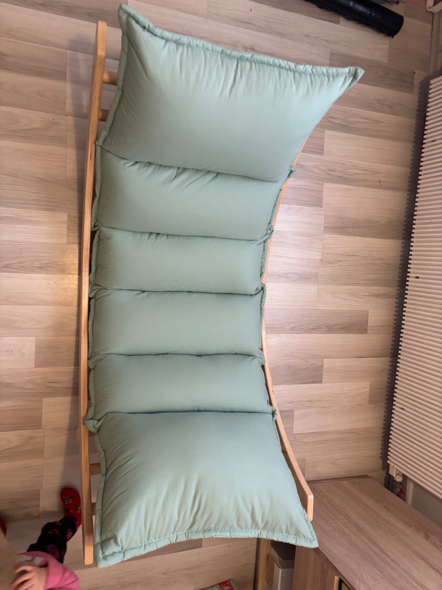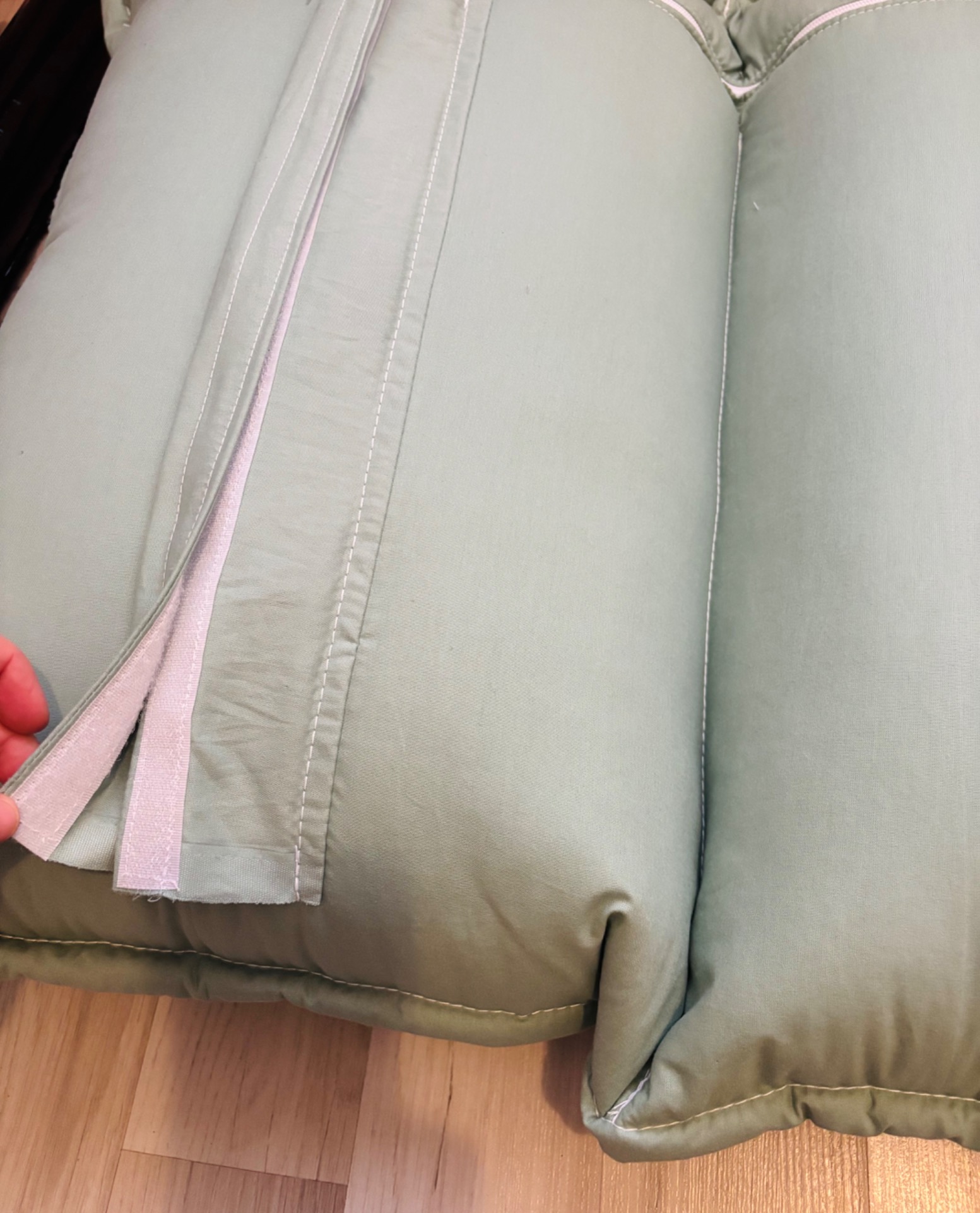 Felnőtt óriás hintába való vastag párna. Mindkét végen egy vastagabb párna résszel. Két rúdhoz tépőzárral lehet rácsatolni. Külső pamut huzata lecipzározható, mosógépben mosható, szárítható, vasalható.