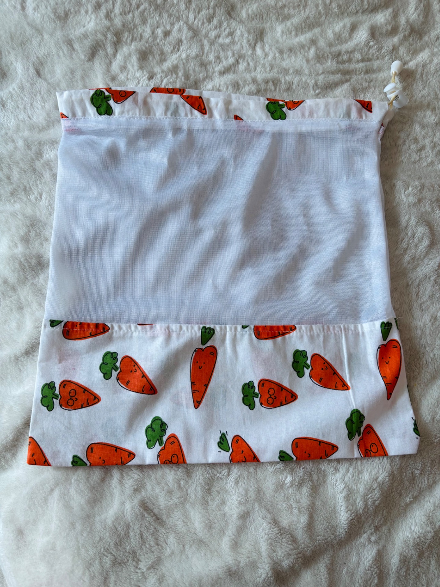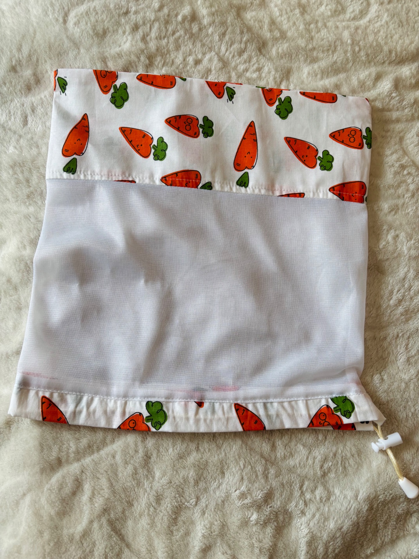 Pamutvászon és háló felhasználásával készült pillekönnyű , 2-3 gramm súlyú. Nagyon sokáig használható, mosógépben mosható, a pamutvászon része vasalható.