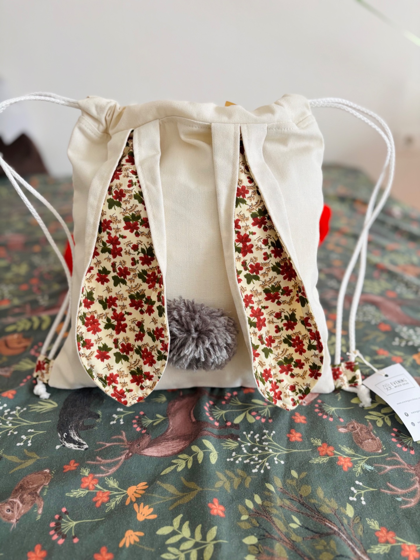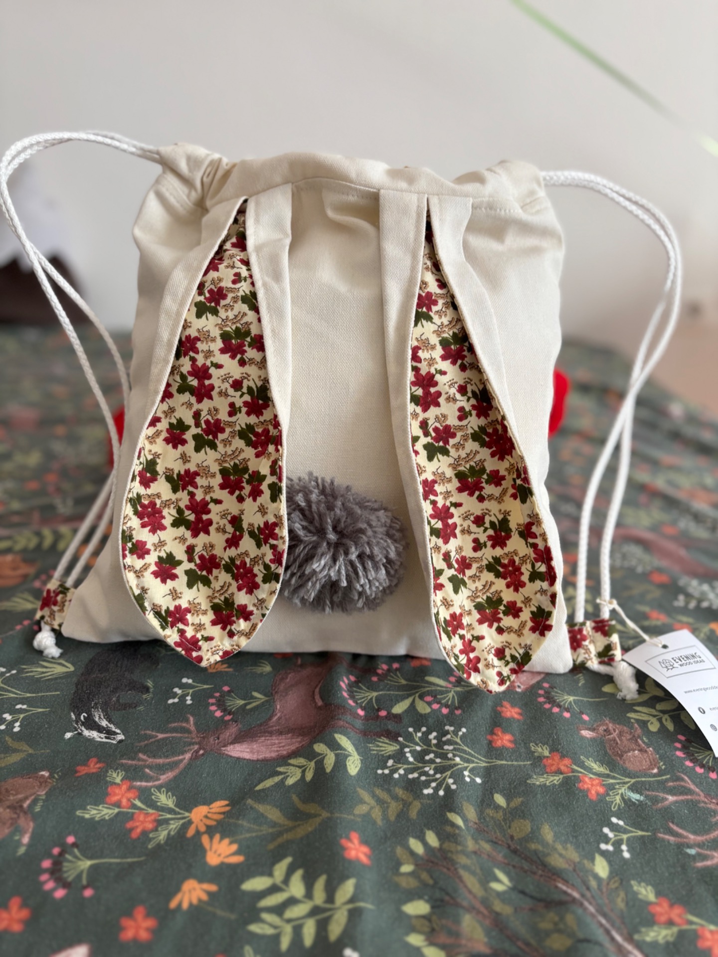 Anyaga pamut tartalmú vastag vászon, bélése pamutvászon. 40 fokon mosható mosógépben szárítógépben szárítható, vasalható.