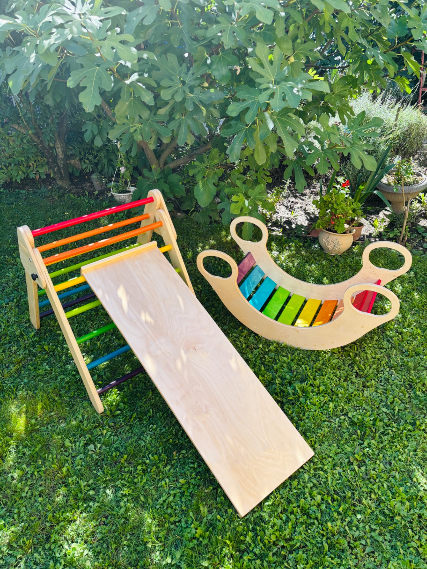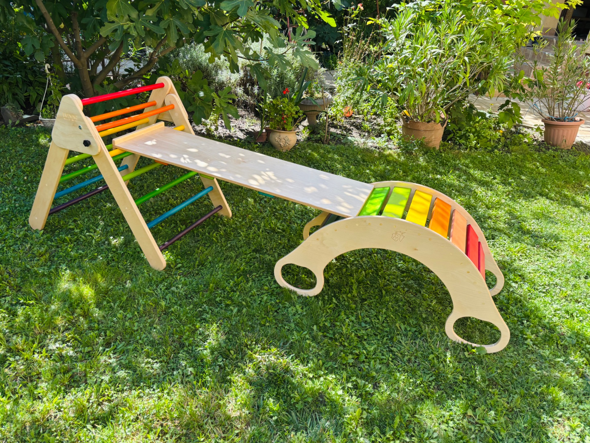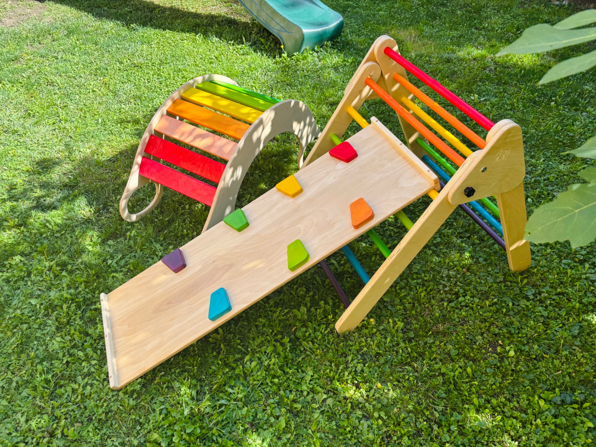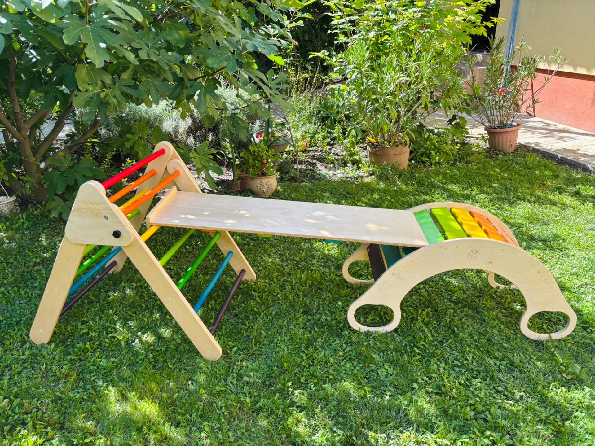 Igyekeztünk a megfelelő méretet (se túl magas - biztonság, se túl alacsony - csúszdázható) kikísérletezni és ötvözni a szemnek tetsző megjelenéssel. Összecsukható és az ágy alá betehető! A bükkfa rudakat bababarát festékkel és lakkal kezeltük. 10 hónapos kortól bevezethető, mert ebben a korban már a babák a mászóka lépcsőit használhatják felhúzásra és felállásra. Nagyjából 6 éves korukig érdekli őket. Segíti a gyerekeket, hogy saját tempójukban történjen a mozgásfejlődésük.