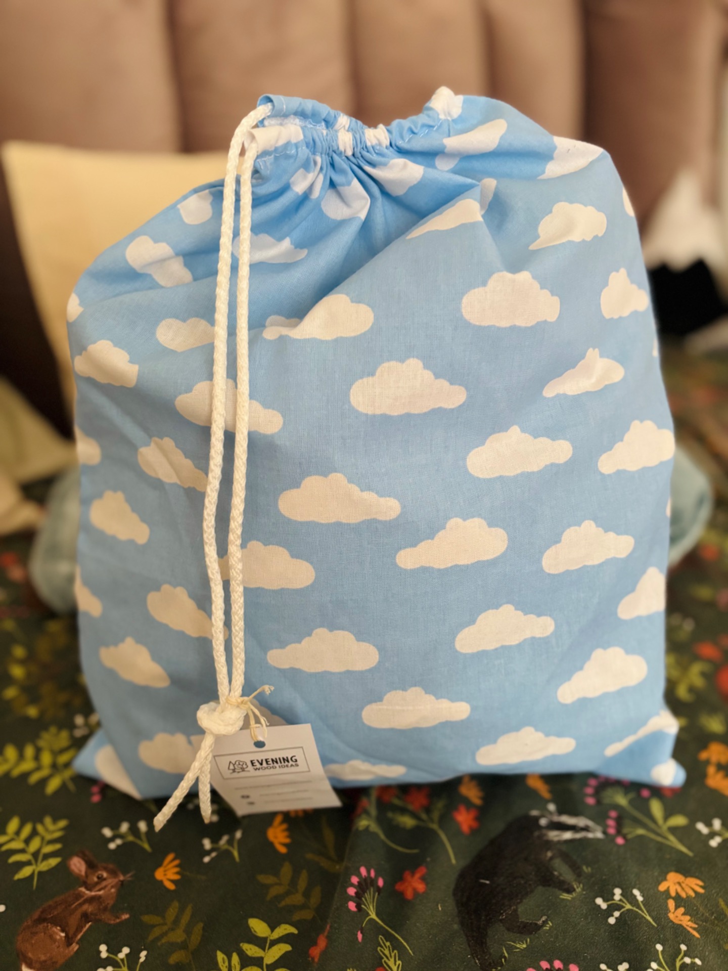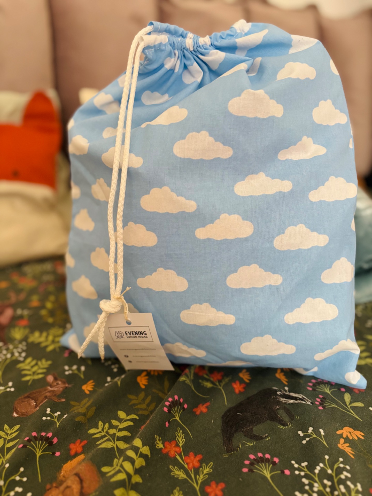Pamutvászon anyagból készült, tetején húzózsinorral.