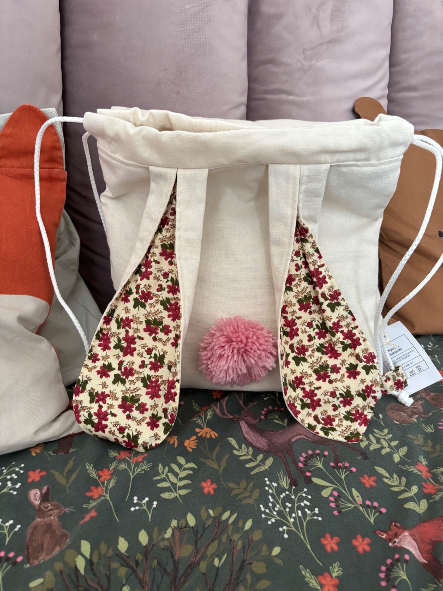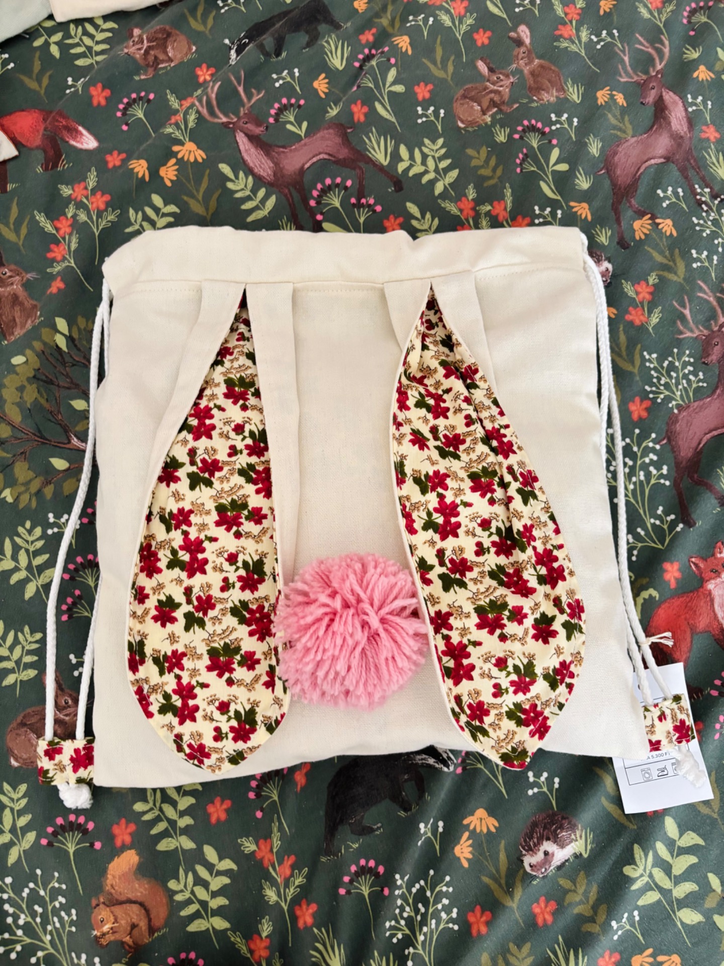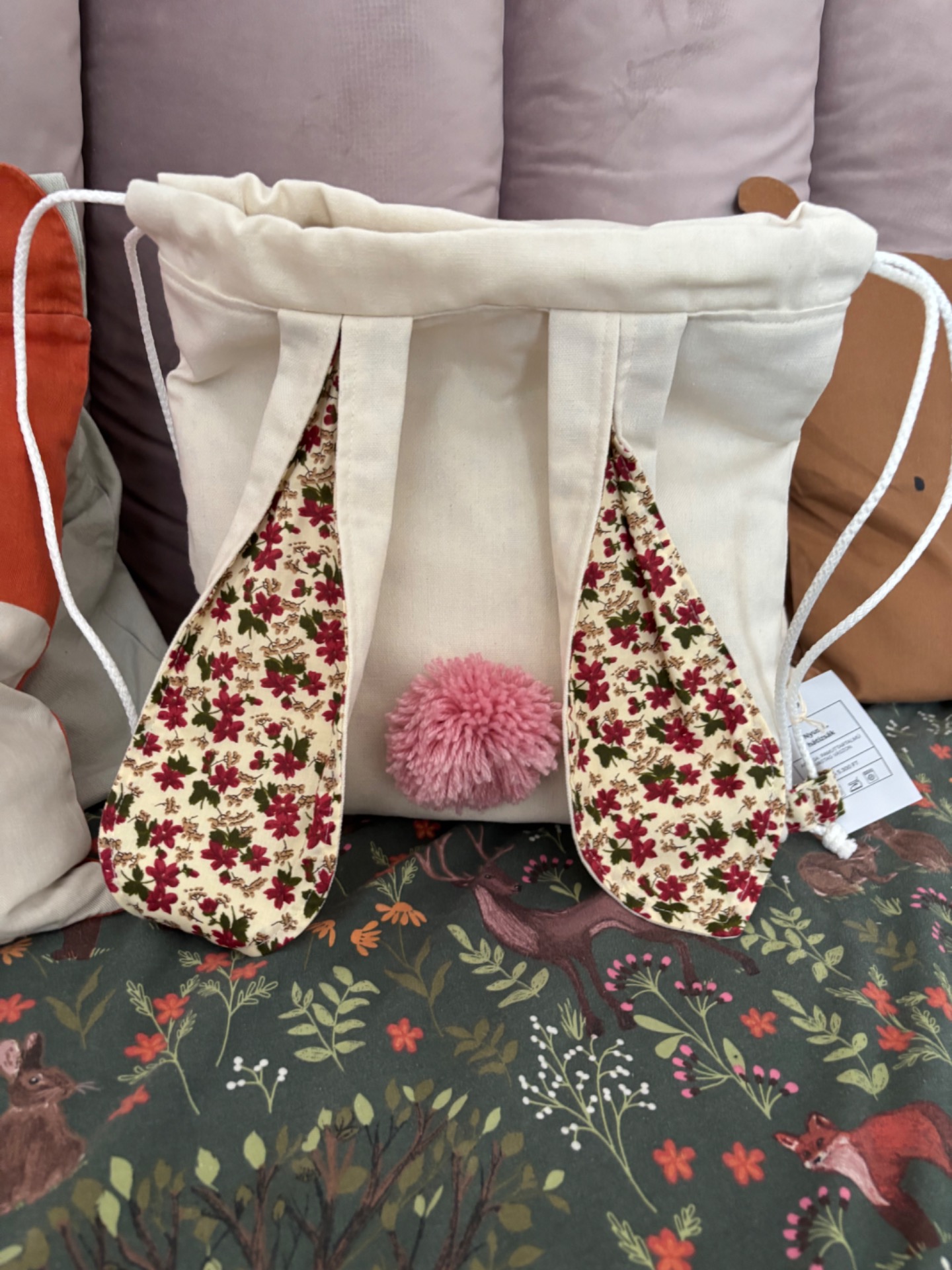 Anyaga pamut tartalmú vastag vászon, bélése pamutvászon. 40 fokon mosható mosógépben szárítógépben szárítható, vasalható.
